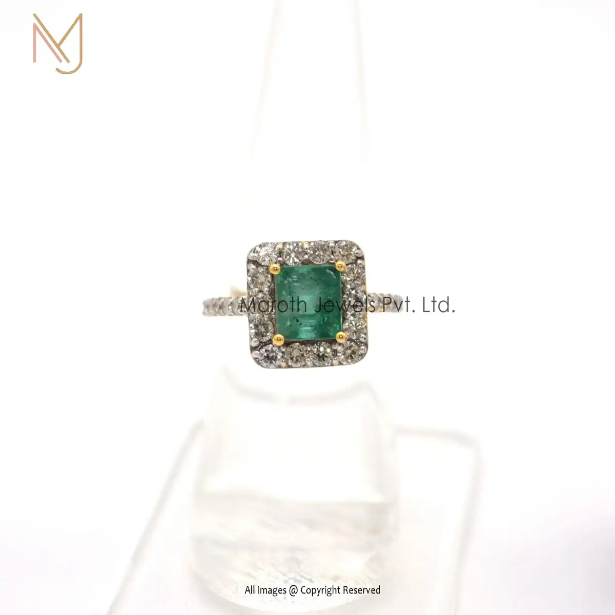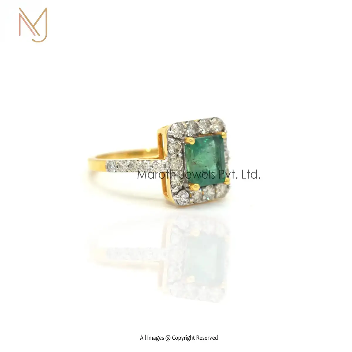 14K Yellow Gold Pave Diamond Emerald Gemstone Ring Manufacturer