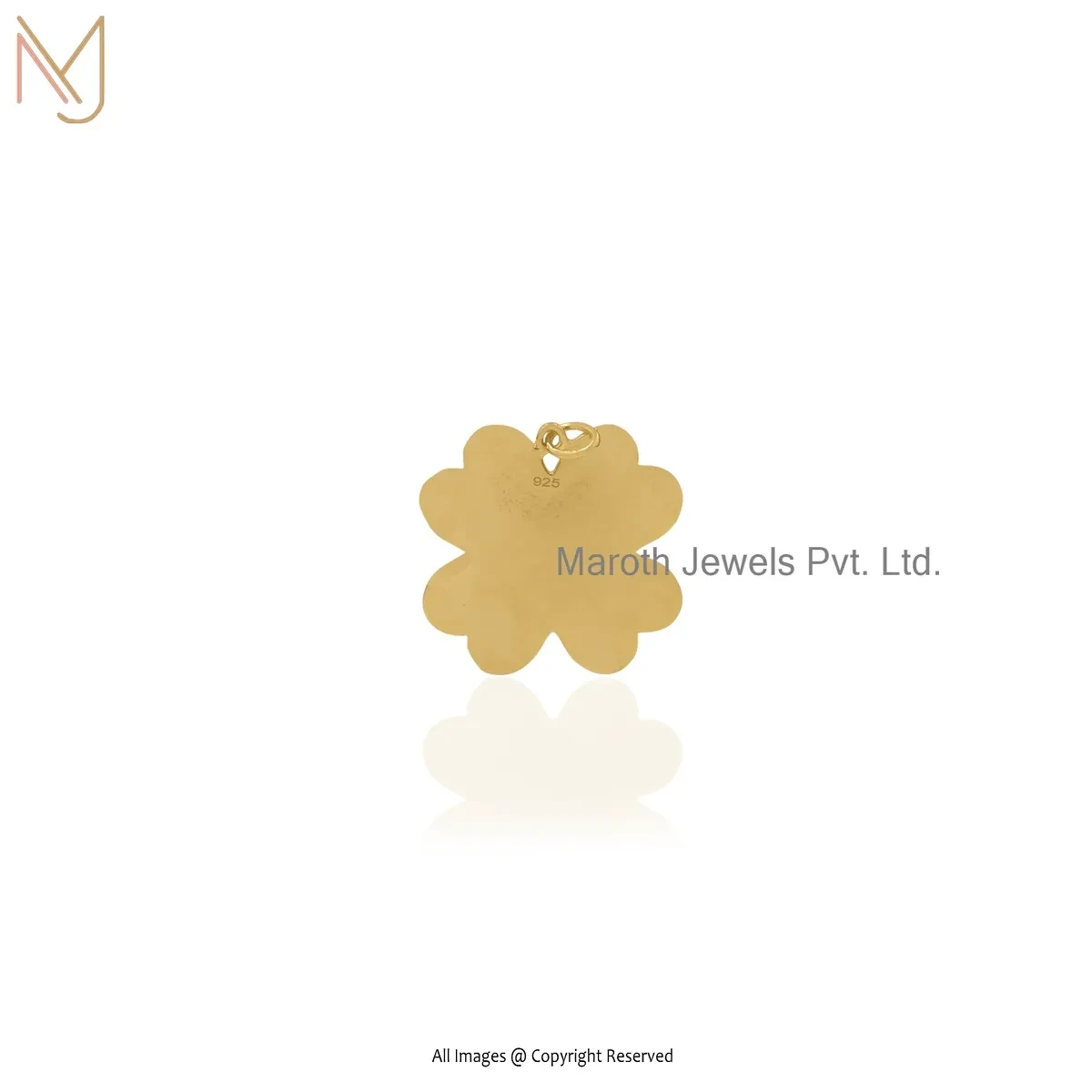14K Yellow Gold Pave Diamond Four Heart Clover Pendant Jewelry Supplier