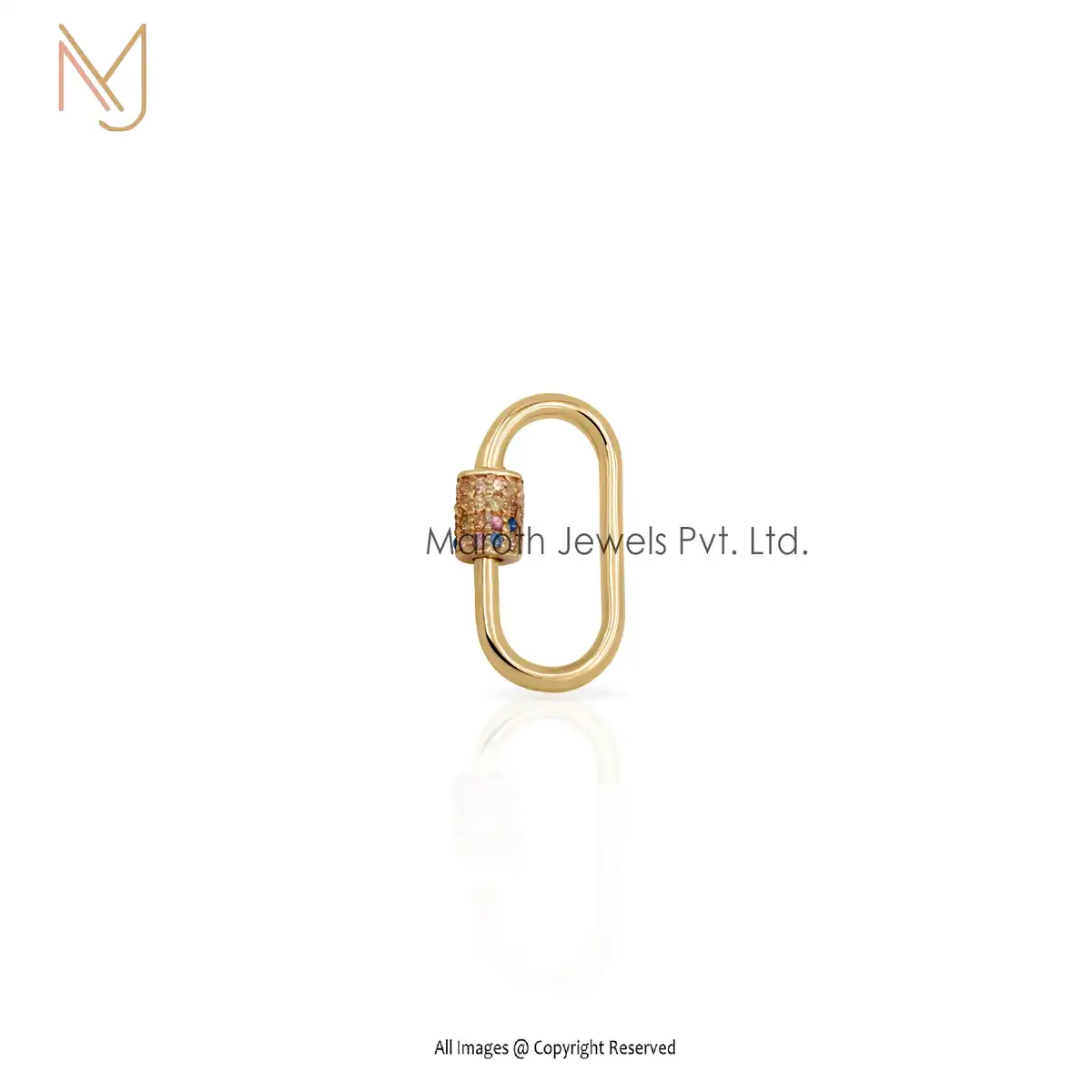 14K Yellow Gold Pave Diamond Gemstone Carabiner Lock Jewelry Supplier