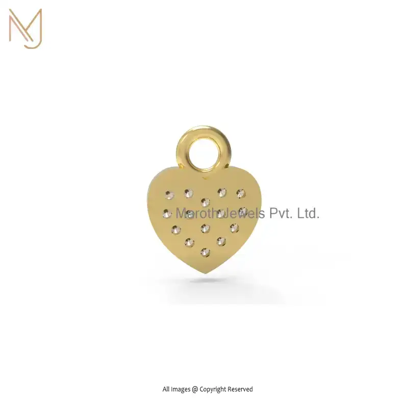 14K Yellow Gold Pave Diamond Heart Pendant Jewelry Supplier