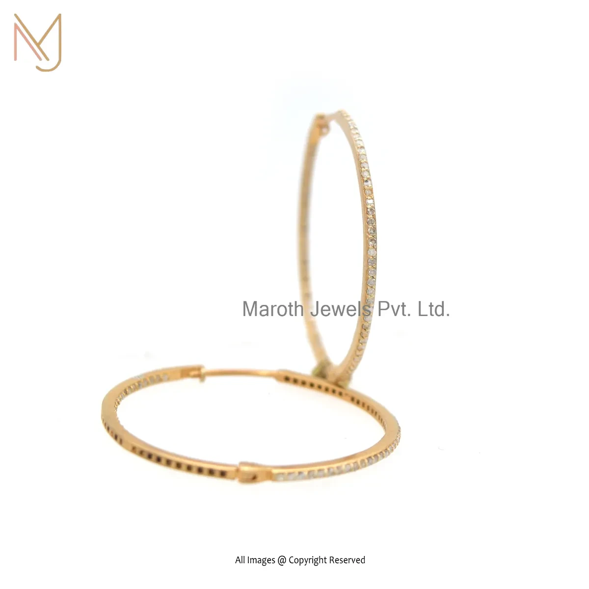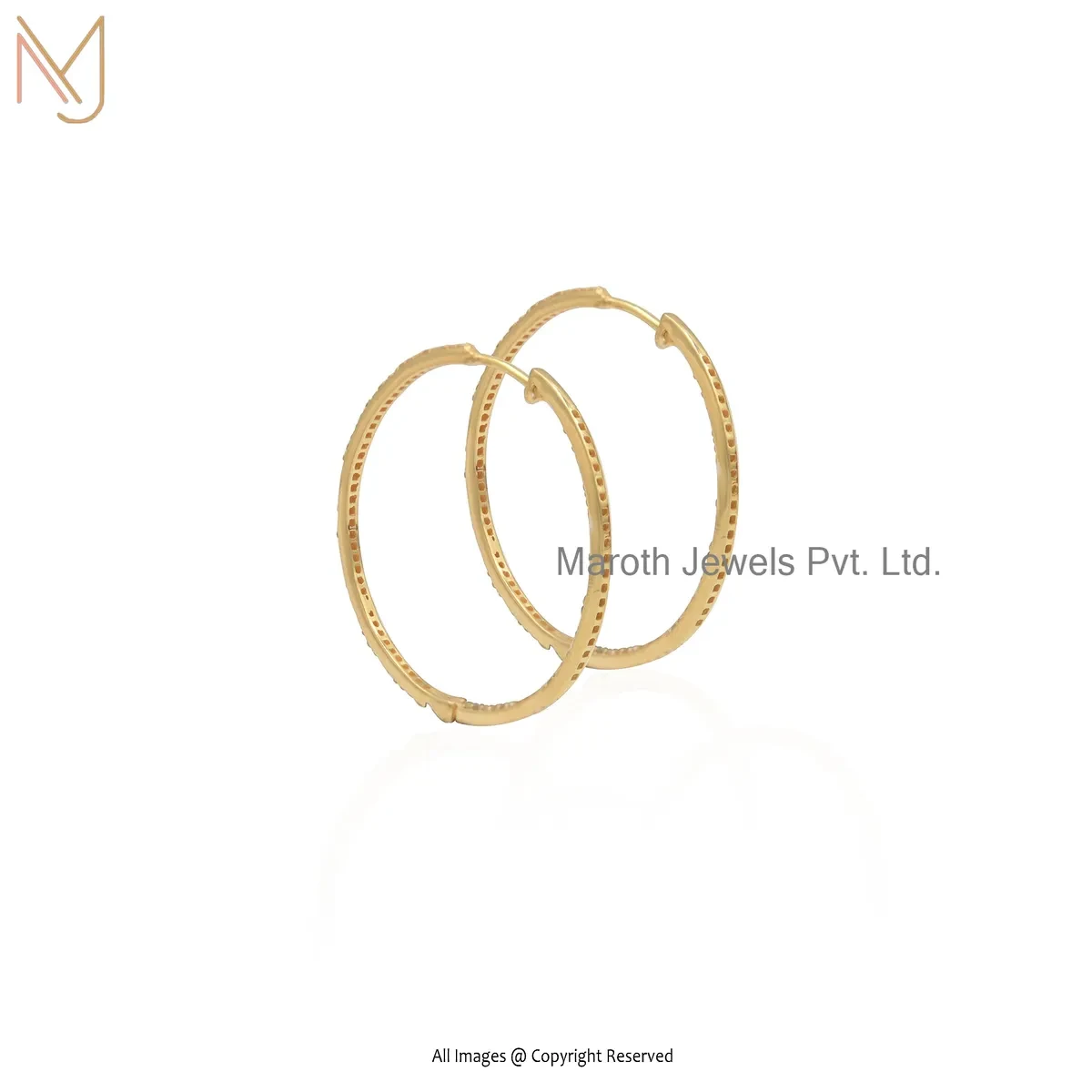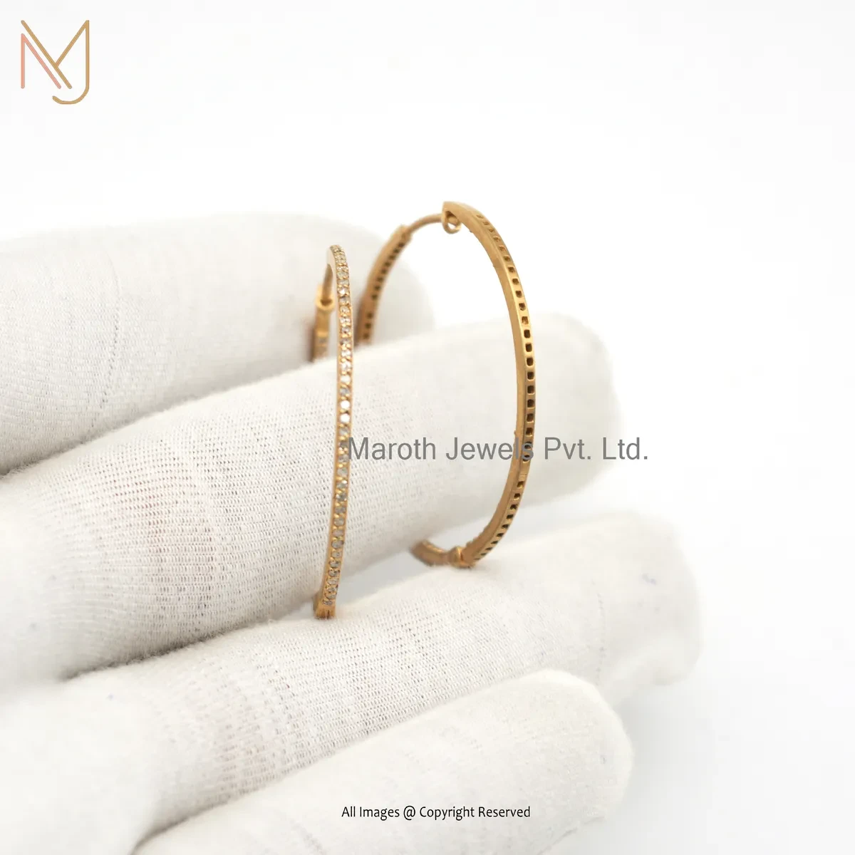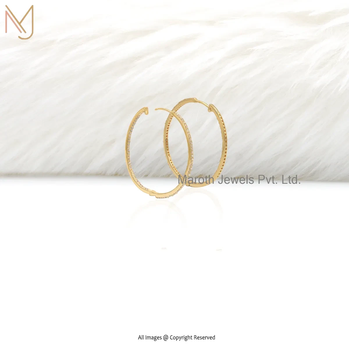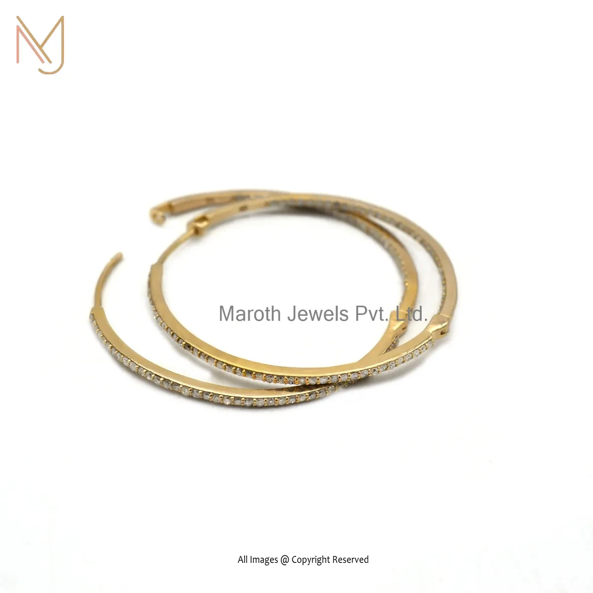 14K Yellow Gold Pave Diamond Hoop Earring Jewelry Supplier