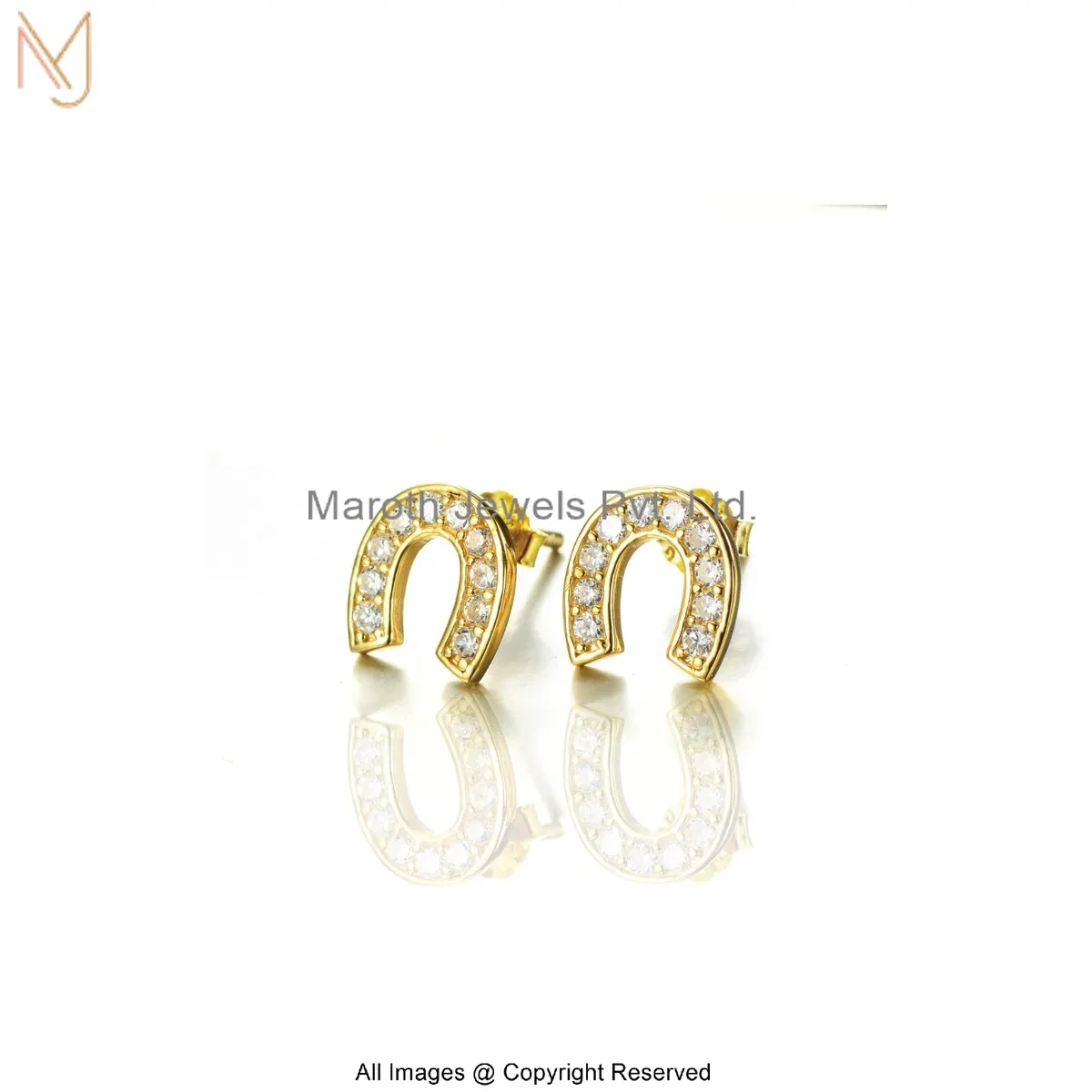 14K Yellow Gold Pave Diamond Horseshoe Stud Earring Custom Jewelry