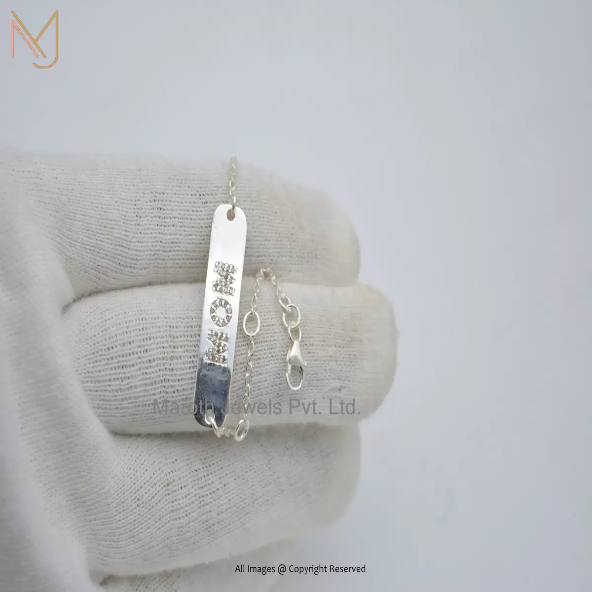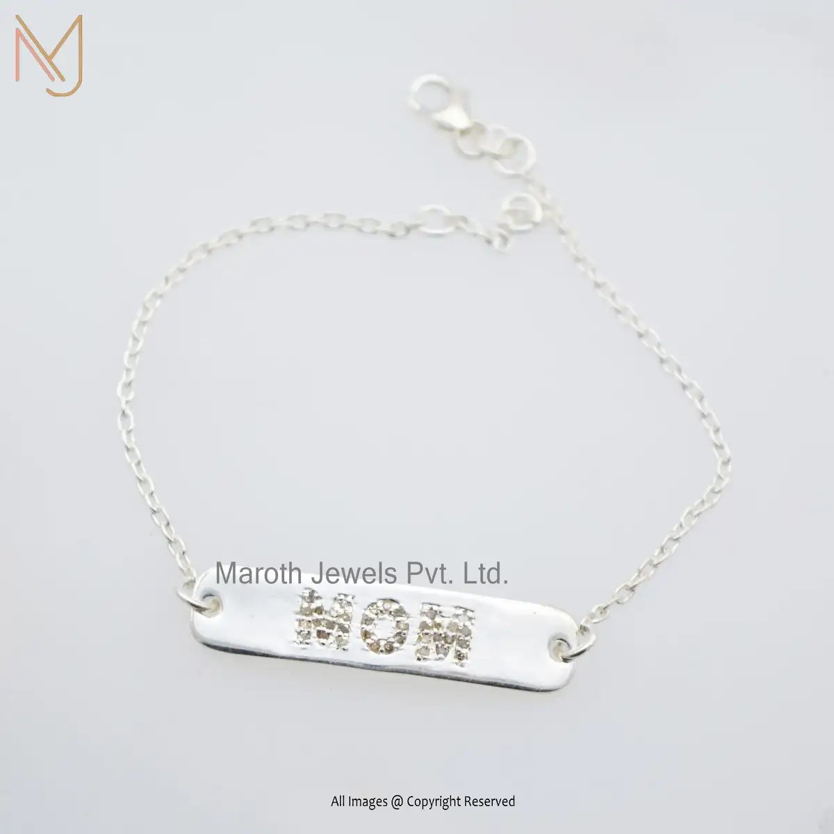 14K Yellow Gold Pave Diamond Mom Letter Designer Bracelet Manufacturer