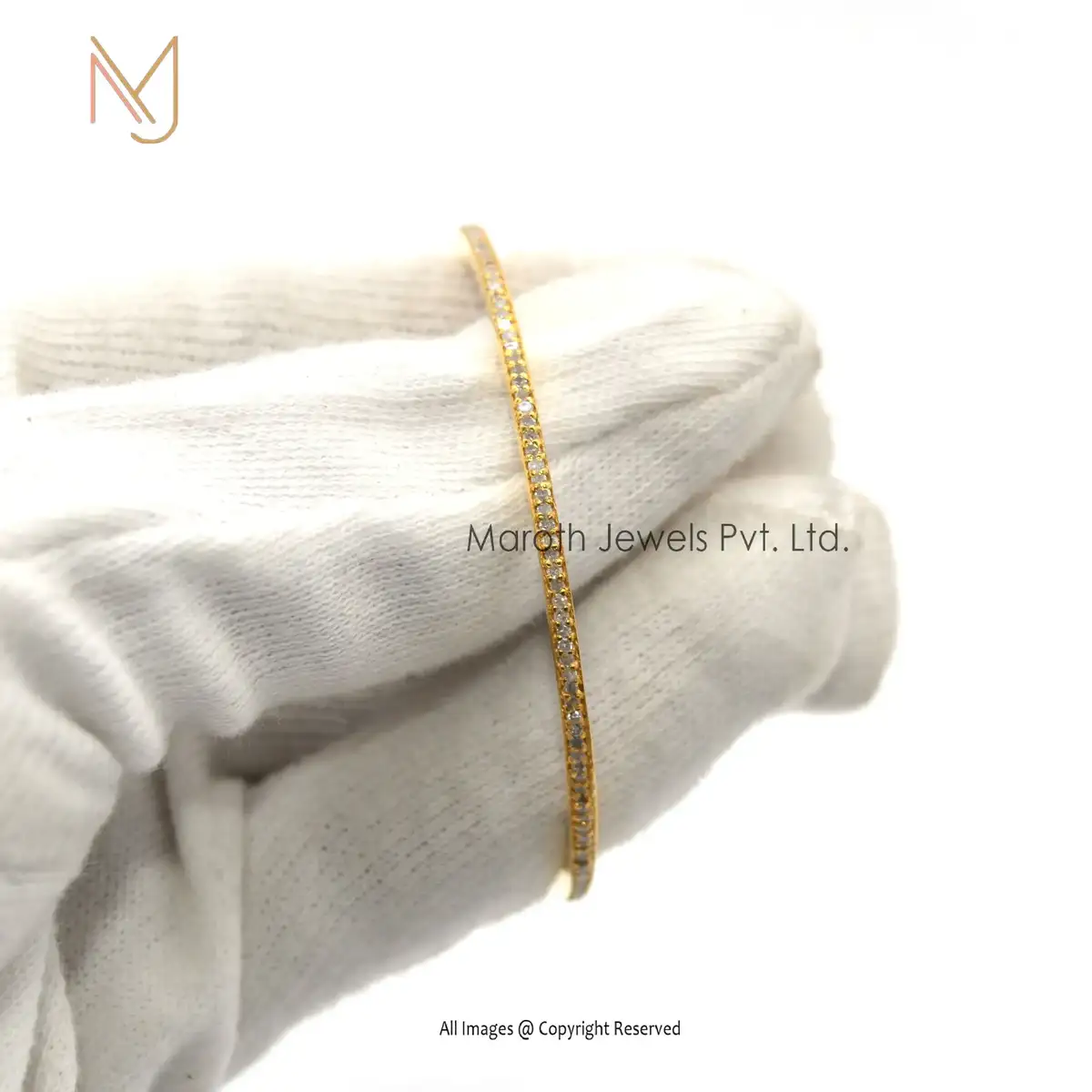 14K Yellow Gold Pave Diamond Wedding Bangle Jewelry Manufacturer