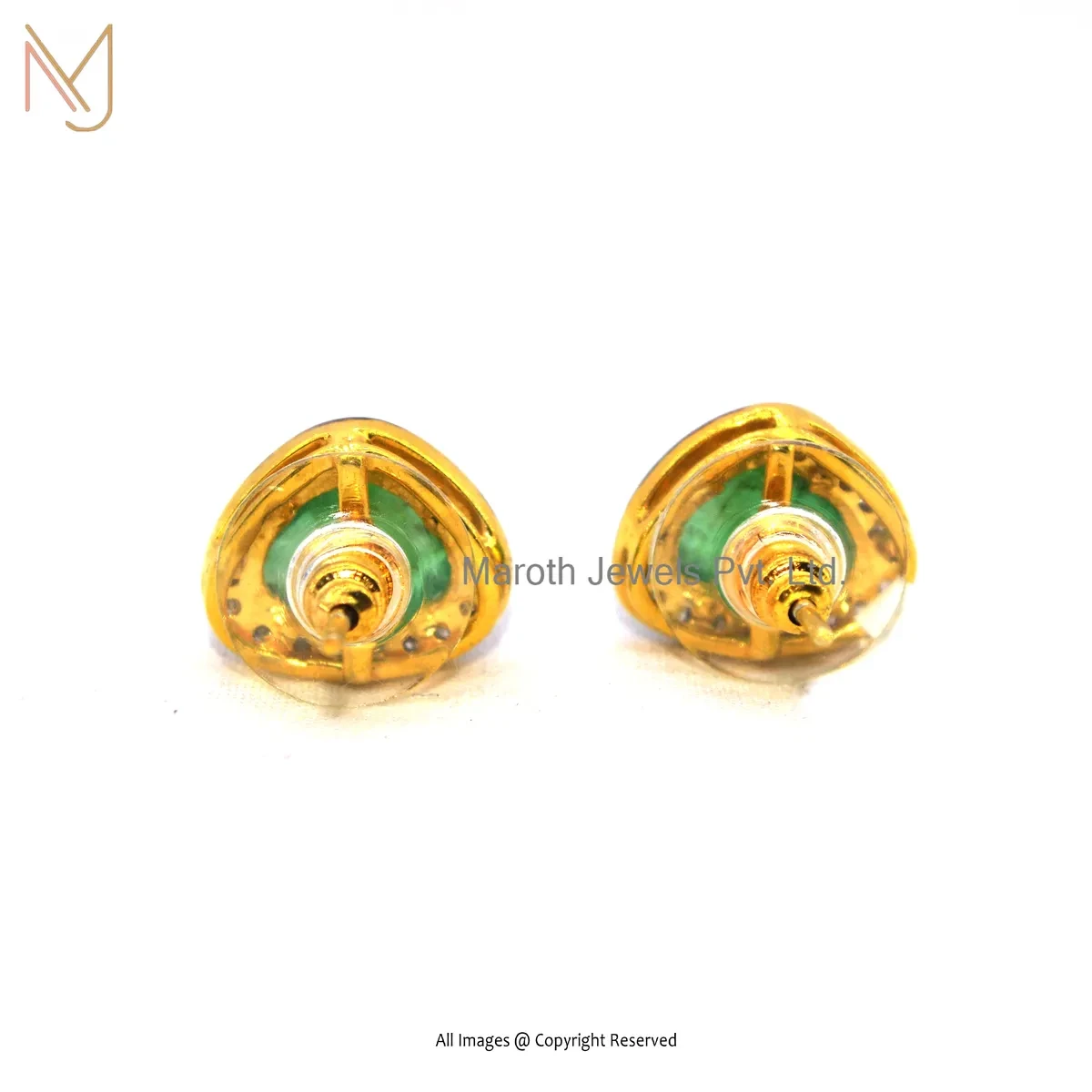 14K Yellow Gold Pave Dimaond Emerald Stud Earring Custom Jewelry