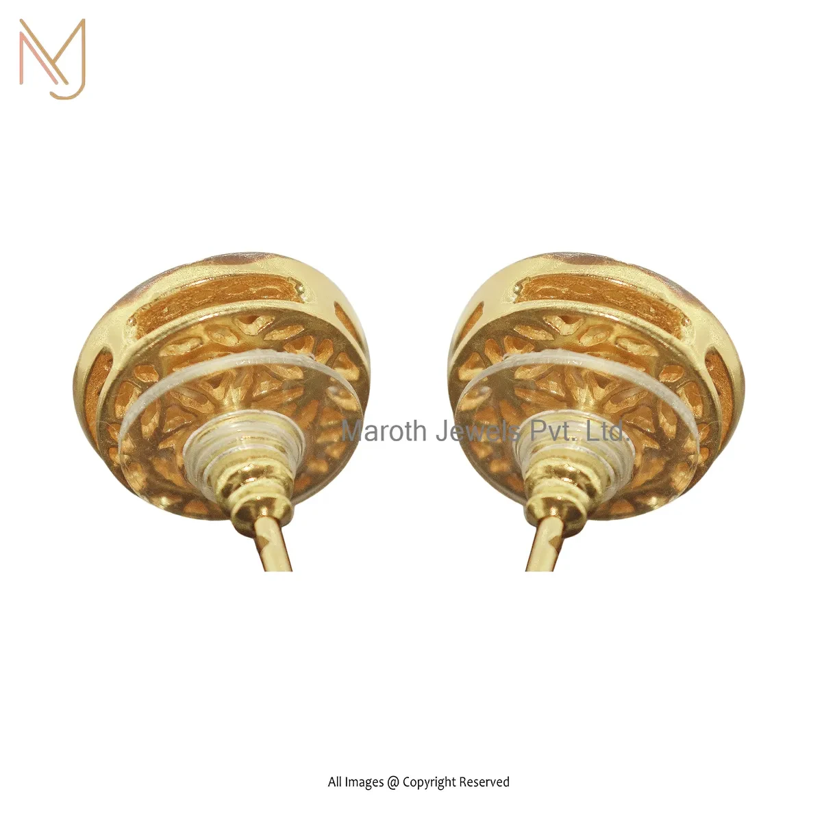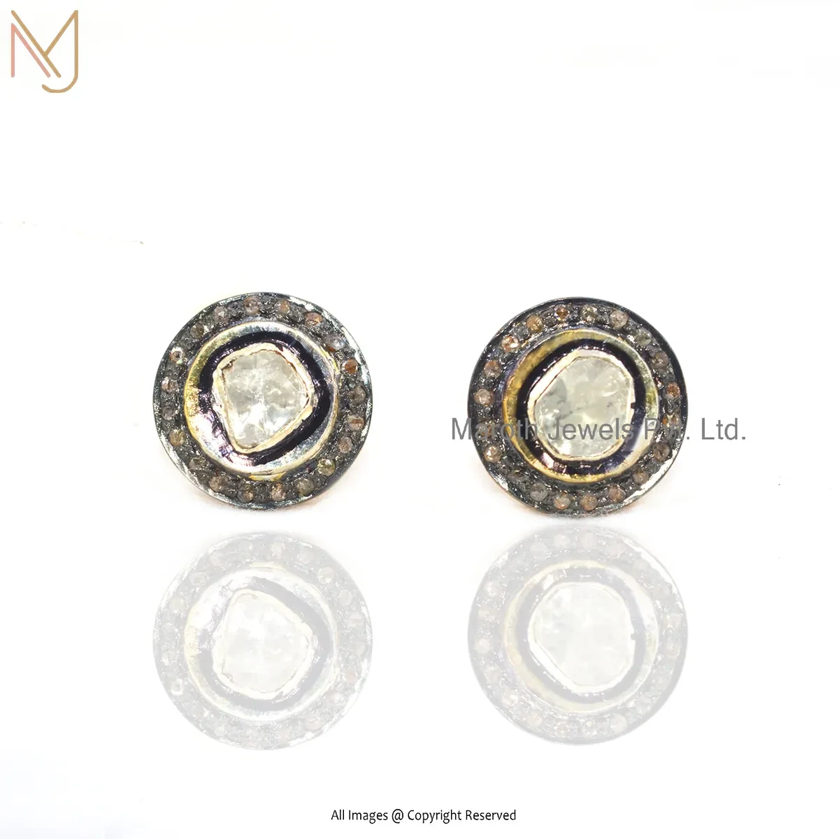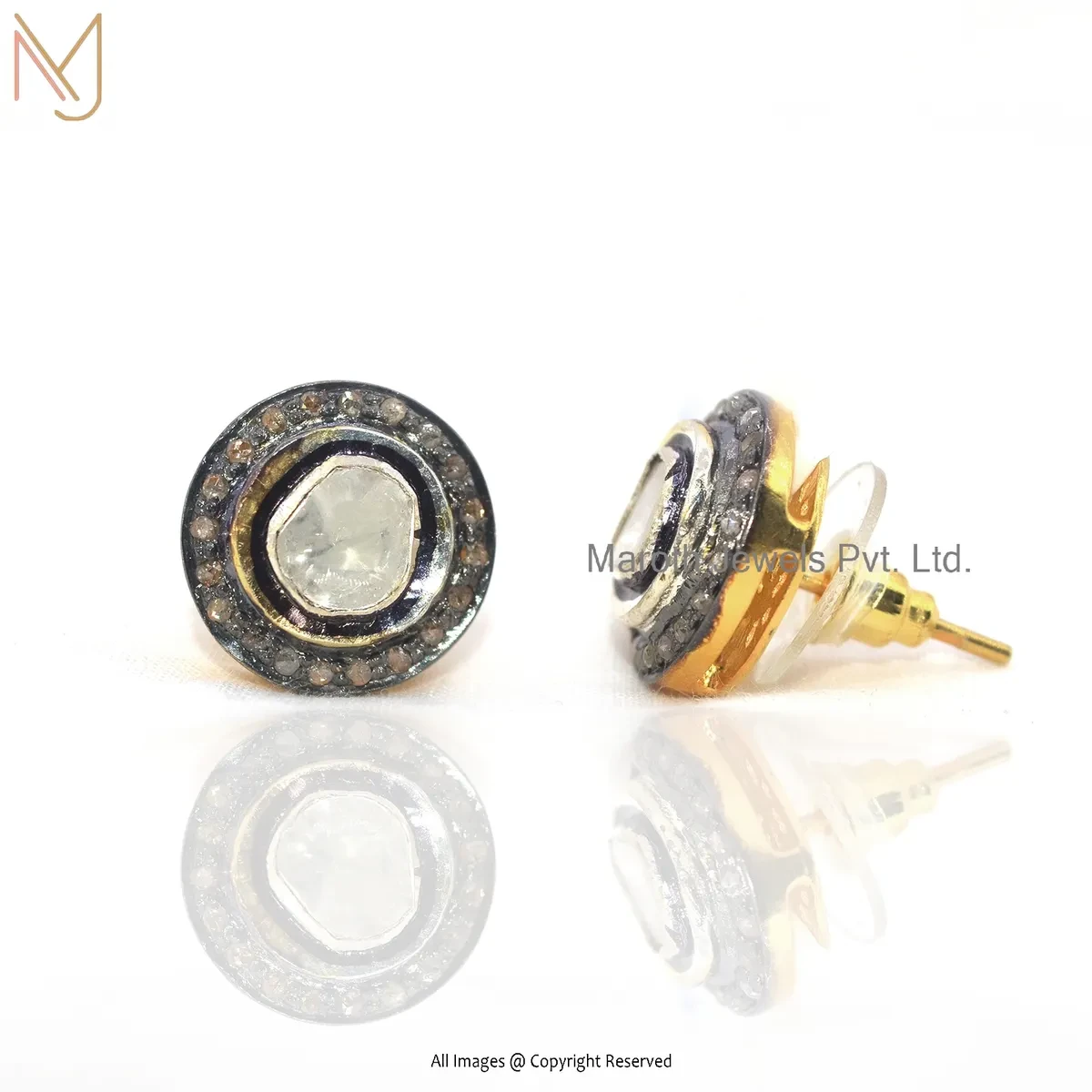 14K Yellow Gold Pave Rose Cut Diamond Stud Earring Jewelry Supplier
