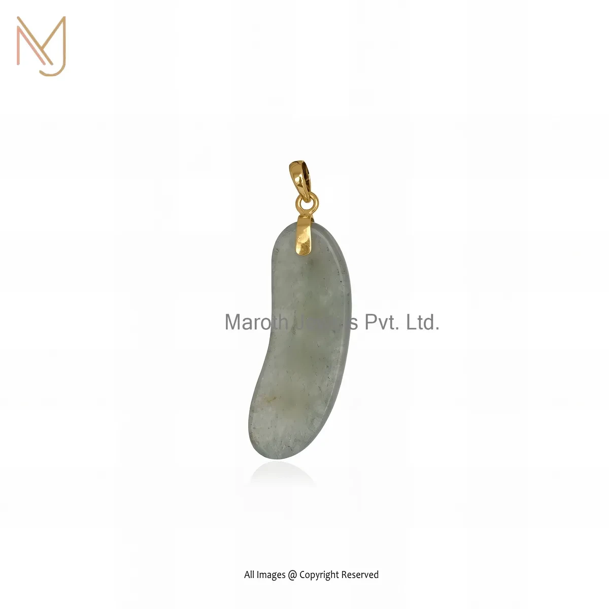 14K Yellow Gold Pearl & Aventurine Gemstone Peas Pendant Jewelry Supplier
