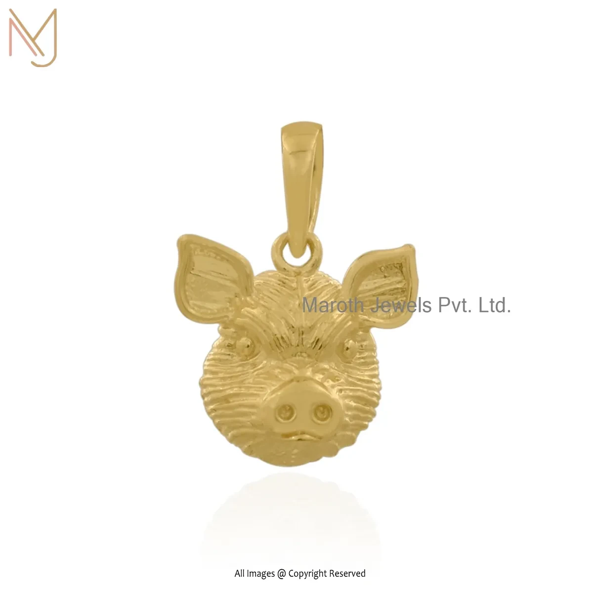 14K Yellow Gold Pig Face Charm Pendant Jewelry Supplier