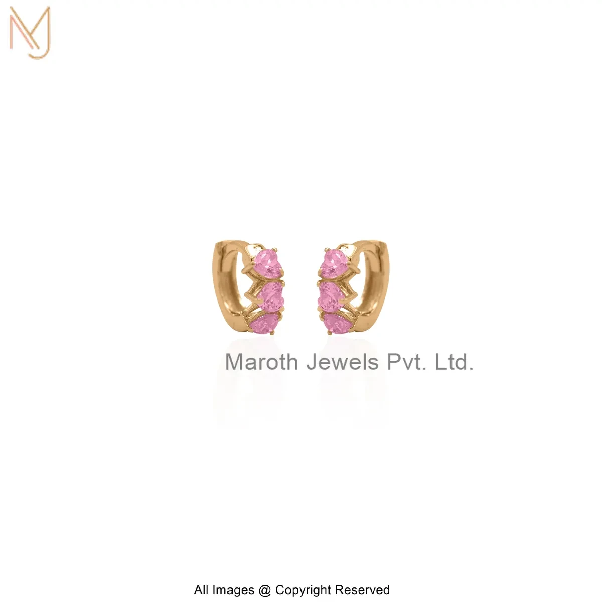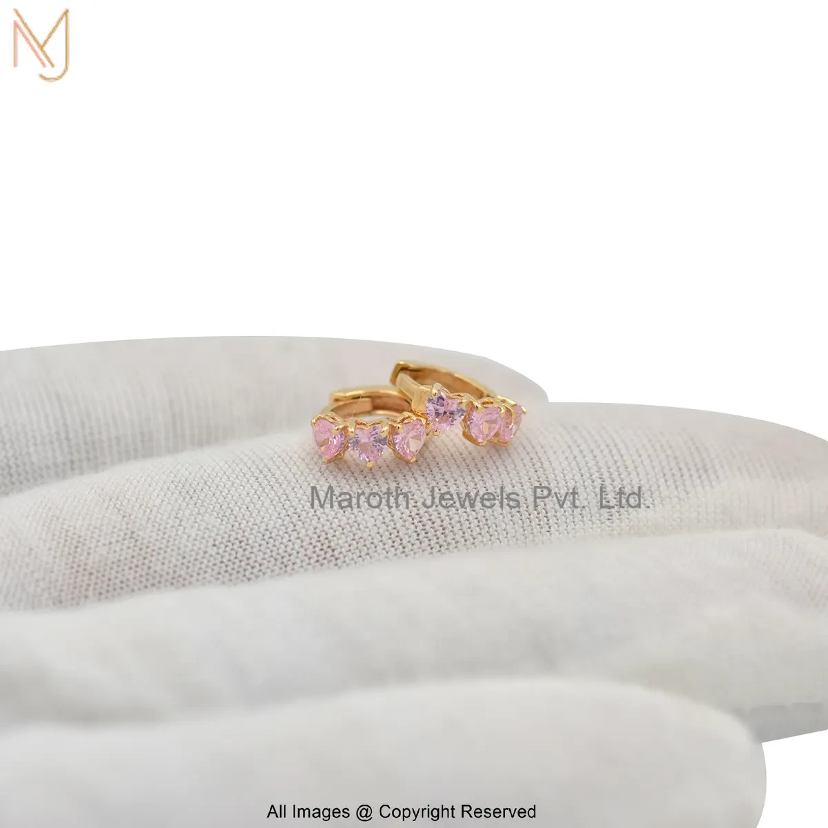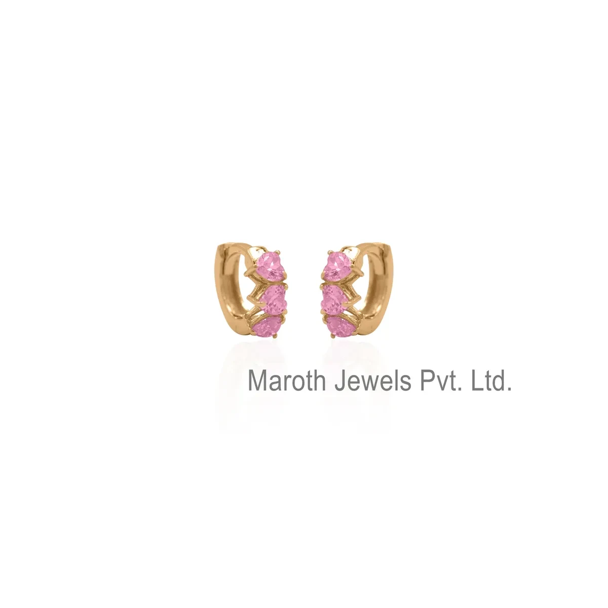 14K Yellow Gold Pink Cubic Zircon Heart Shape Huggies Earring Jewelry Supplier