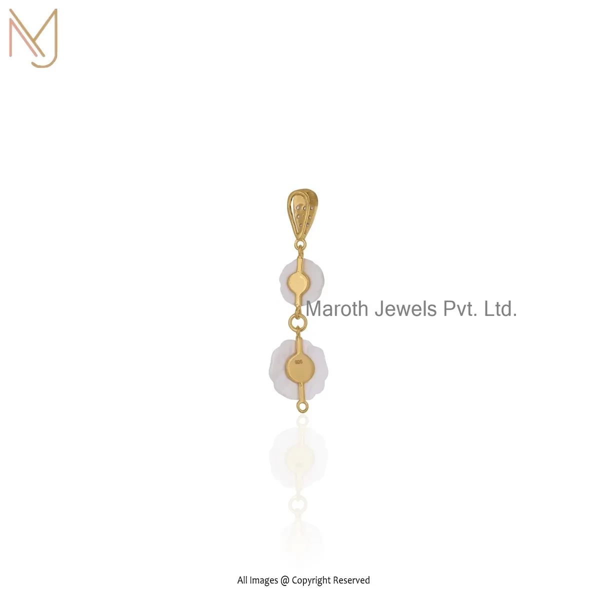 14K Yellow Gold Pink Cubic Zircon & Mother Of Pearl Flower Gemstone Pendant USA