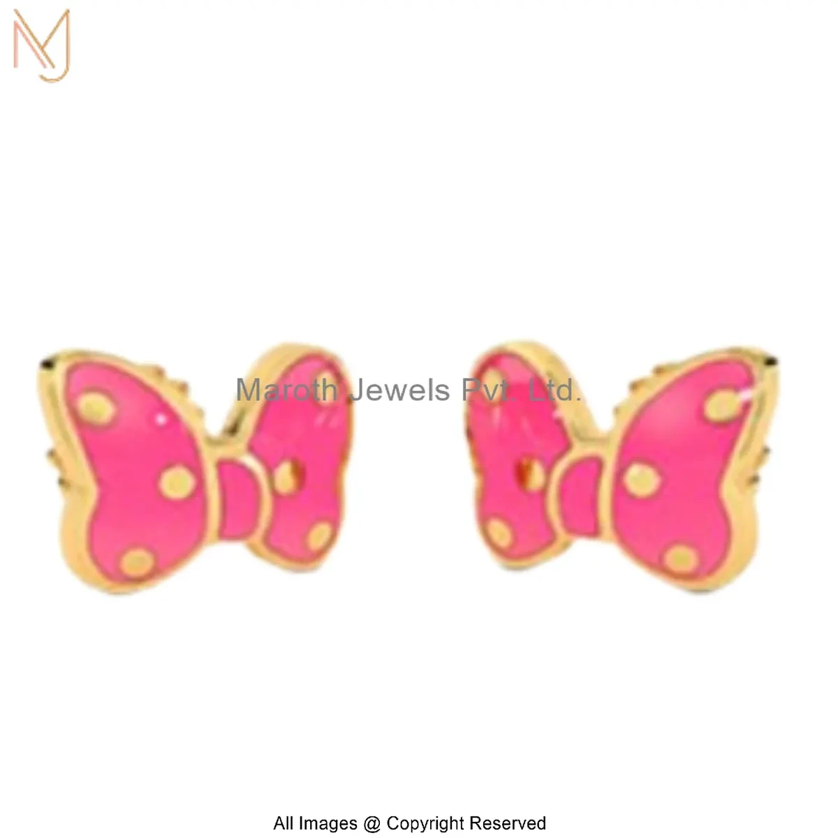 14K Yellow Gold Pink Enamel Butterfly Stud Earring Jewelry Supplier