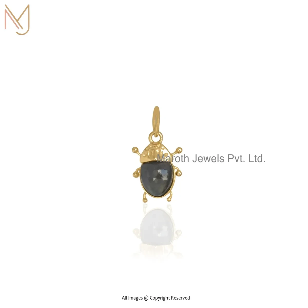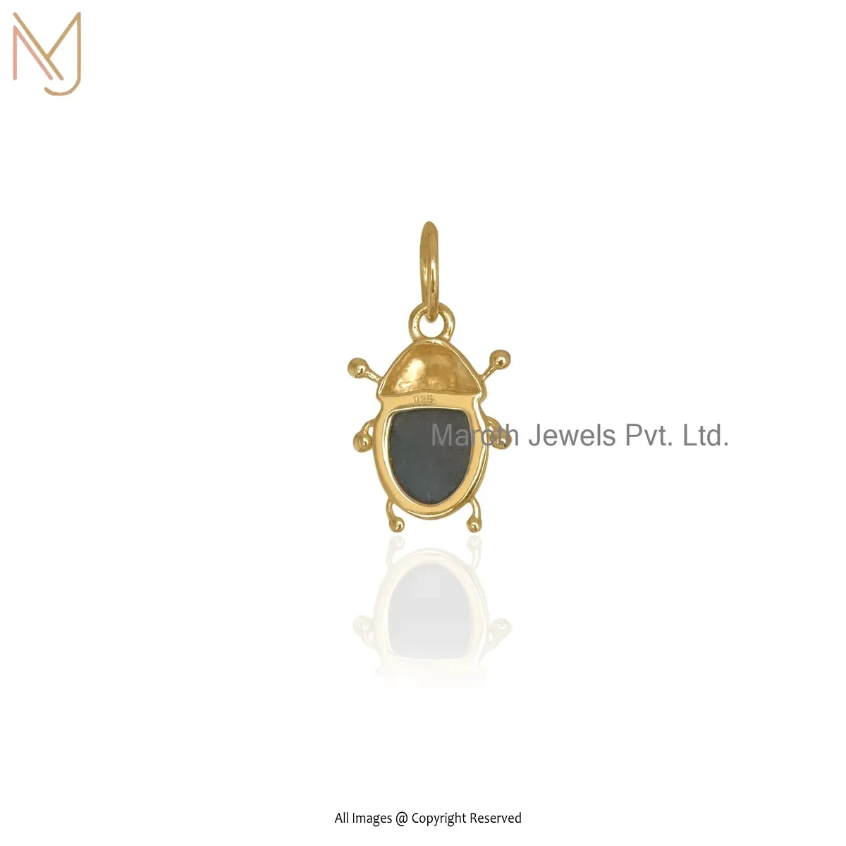 14K Yellow Gold Pink Opal Gemstone Beetle Charm Pendant Custom Jewelry