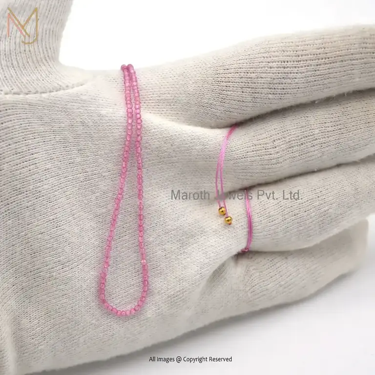14K Yellow Gold Pink Quartz Gemstone Beaded Thread Necklace Jewelry Manufacturer