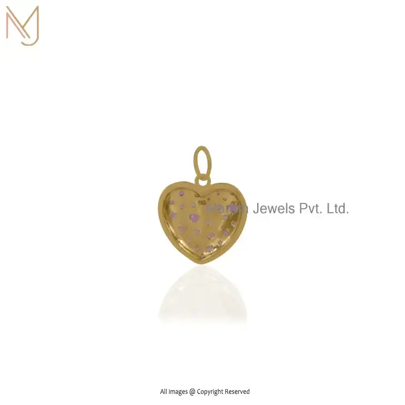 14K Yellow Gold Pink Sapphire Heart Pendant Gemstone Jewelry Supplier