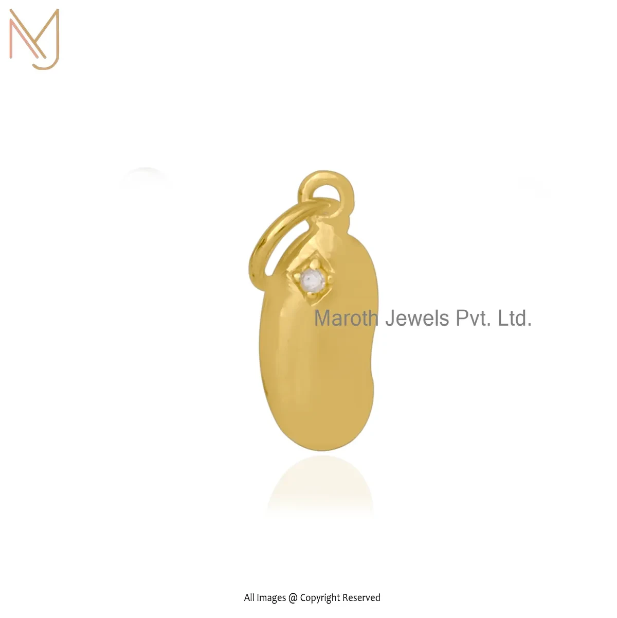 14K Yellow Gold Pink Sapphire Kidney Bean Charms Pendant Jewelry Manufacturer