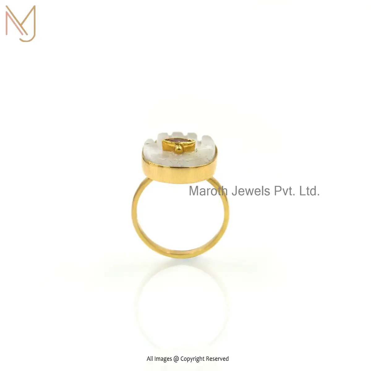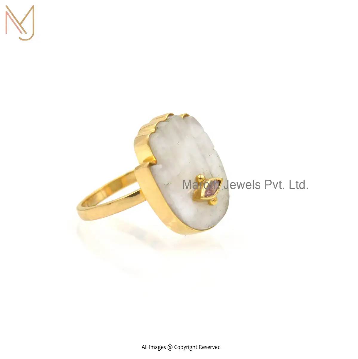 14K Yellow Gold Plated Moonstone Pink Sapphire Hamsa Hand Ring Jewelry Manufacturer