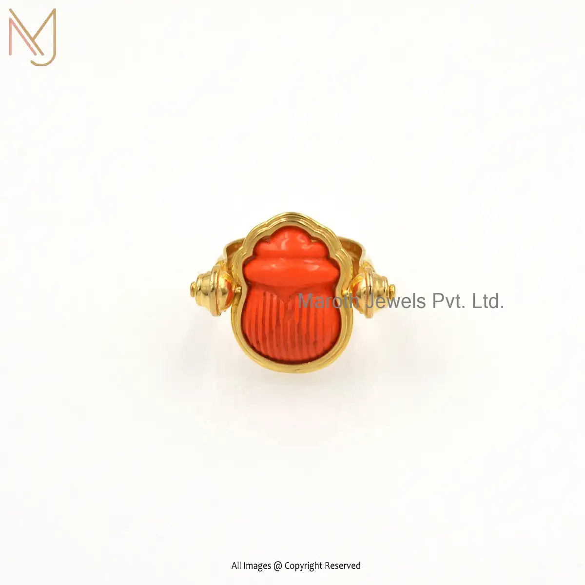 14K Yellow Gold Plated Orange Coral Ring Custom Jewelry