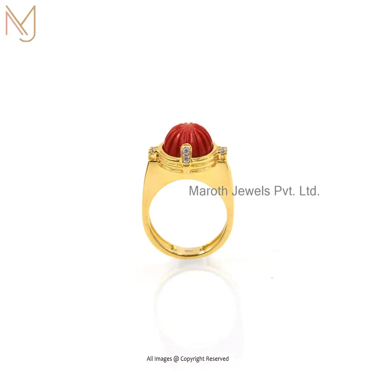 14K Yellow Gold Plated Red Coral Statement Ring Jewelry Manufacturer
