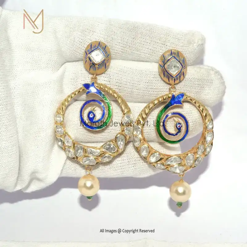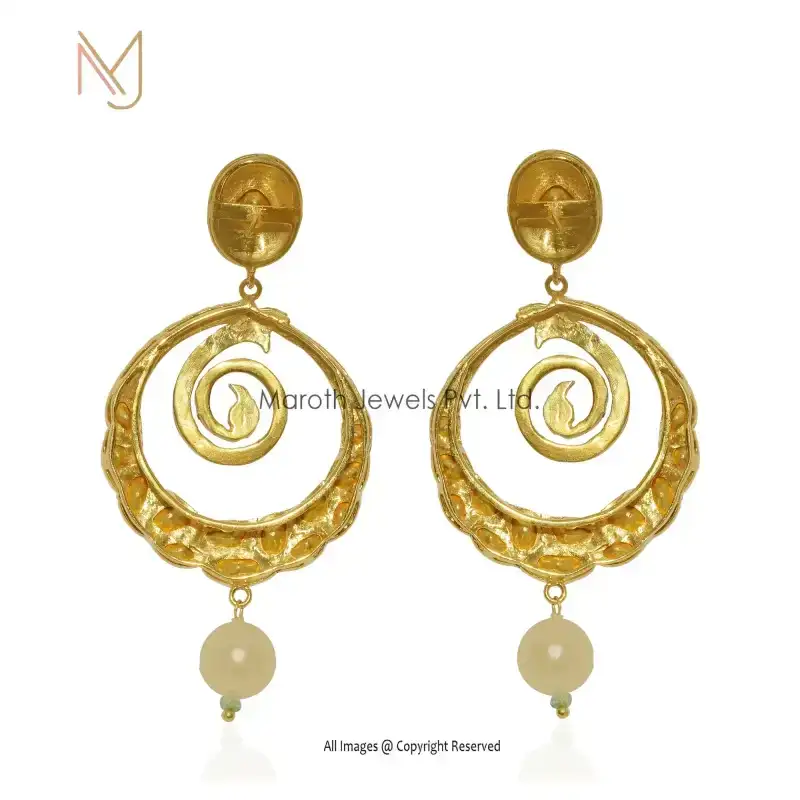 14k Yellow Gold Plated Rose Cut Diamond Pearl Gemstone Beads Earrings Custom Jewelry