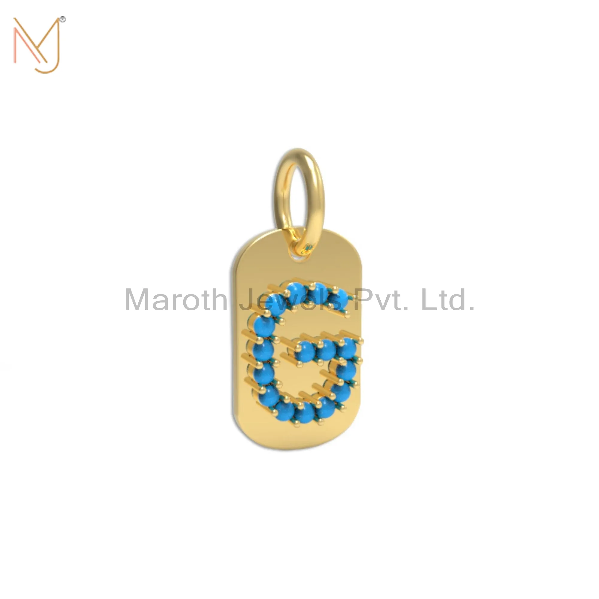 14K Yellow Gold Plated Turquoise Gemstone G Letter Dog Tag Custom Jewelry