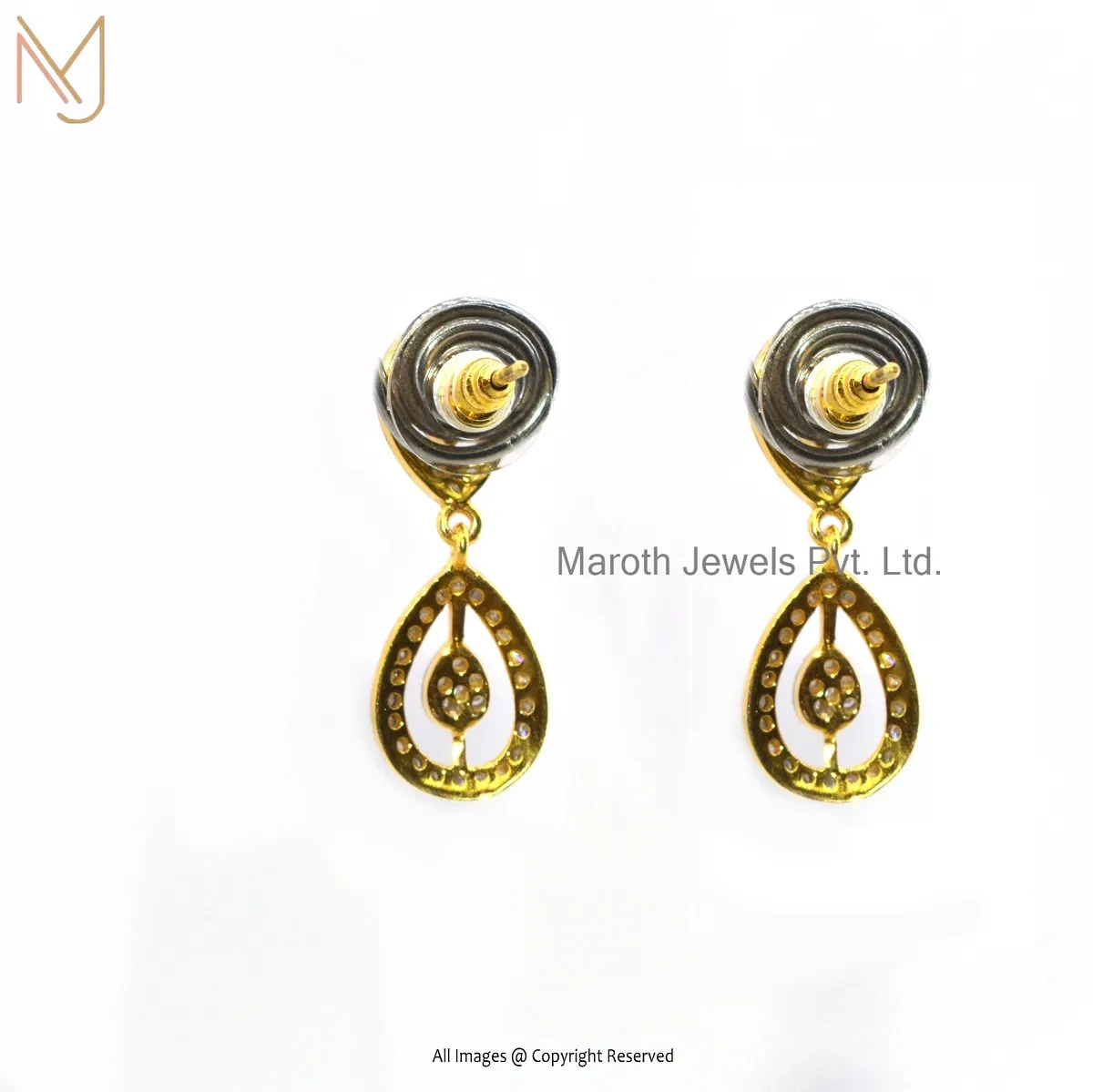 14K Yellow Gold Polki Pave Diamond Dangle Earring Jewelry Supplier