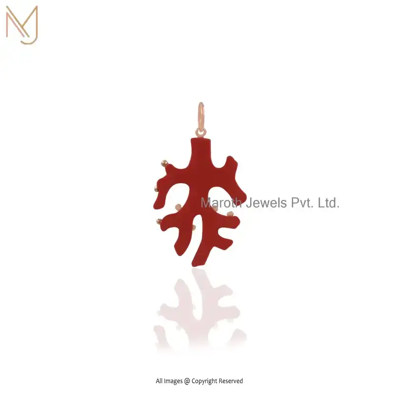 14K Yellow Gold Red Coral Branch Gemstone Pendant Custom Jewelry