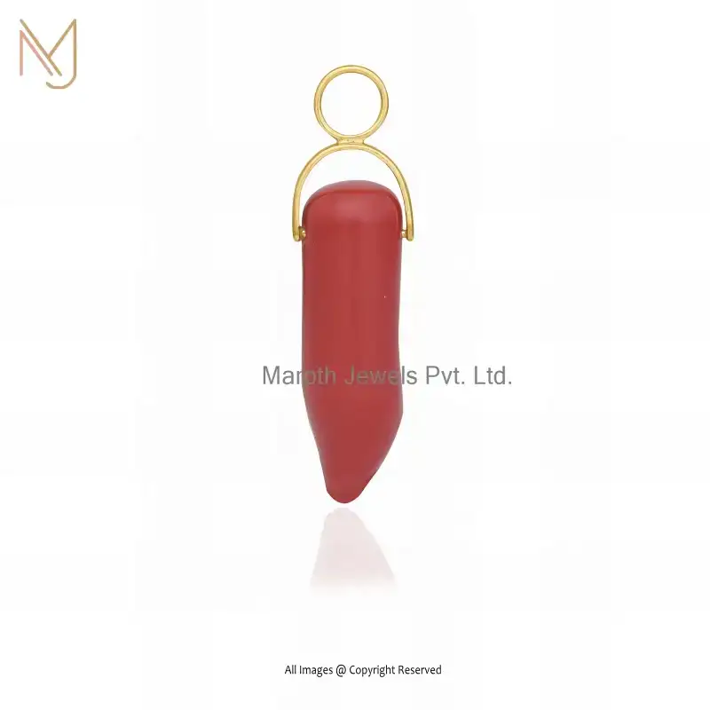 14K Yellow Gold Red Coral Horn Charm Pendant Custom Jewelry