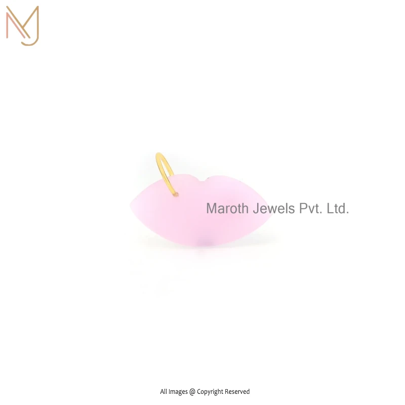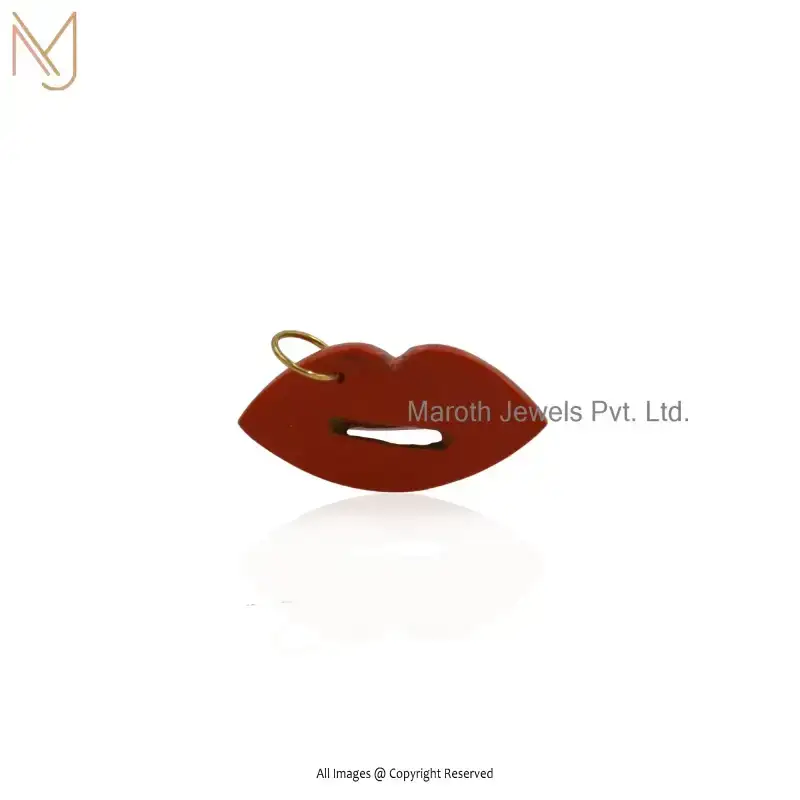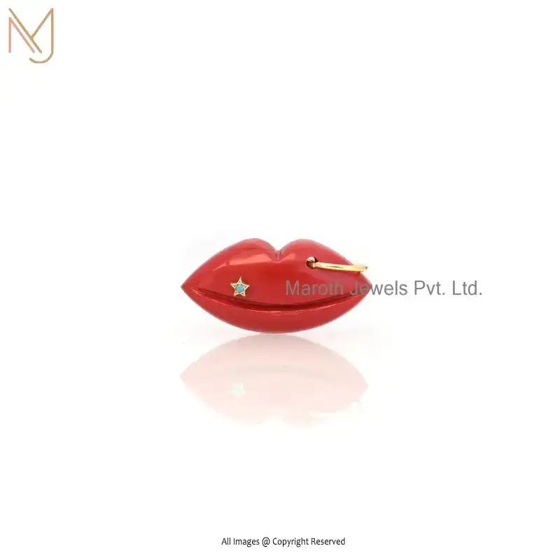 14K Yellow Gold Red Coral & Turquoise Lips Gemstone Pendant Custom Jewelry