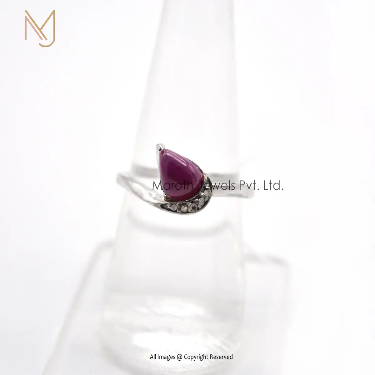 14K Yellow Gold Rhodium Plated Pave Diamond Ruby Gemstone Ring Manufacturer