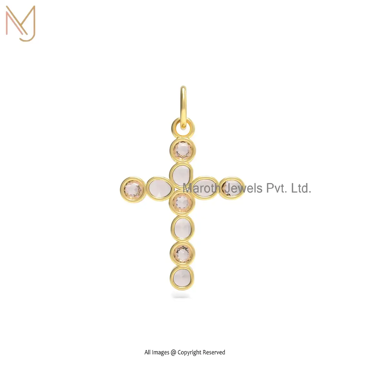 14K Yellow Gold Rose Cut Diamond Cross Pendant Manufacturer