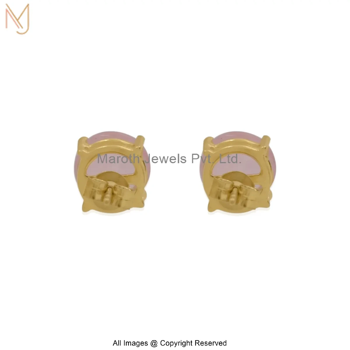 14K Yellow Gold Rose Glow Round Stud Earrings Custom Jewelry