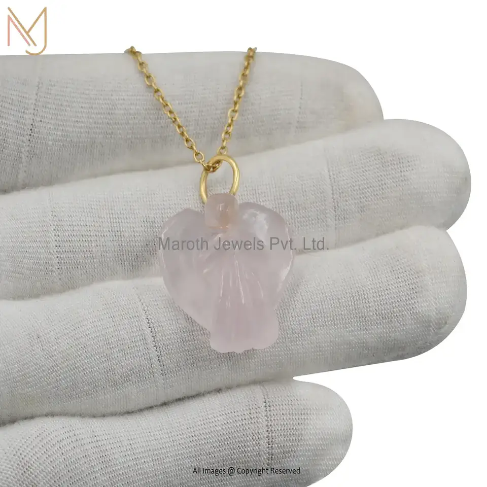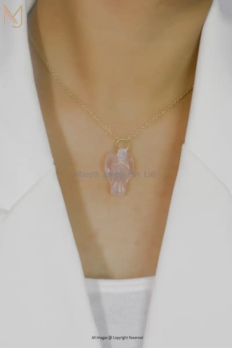 14K Yellow Gold Rose Quartz People Pendant Custom Jewelry