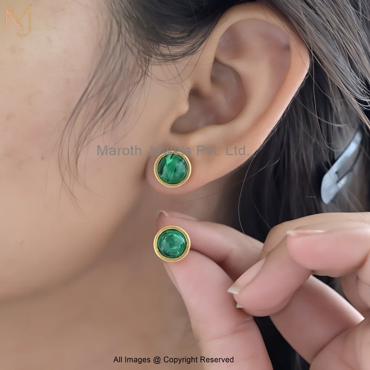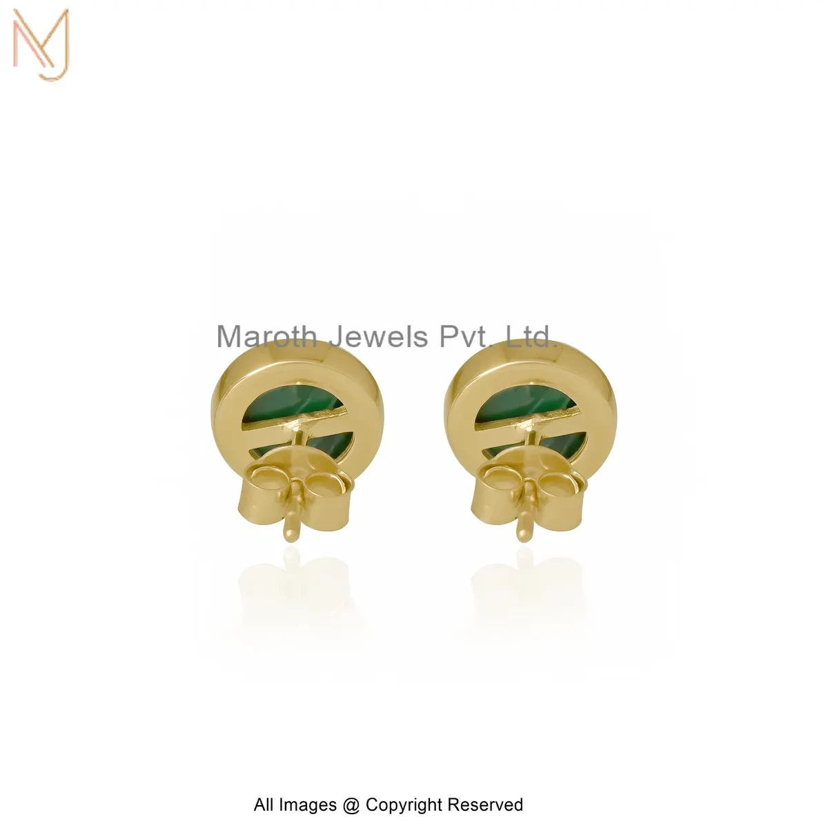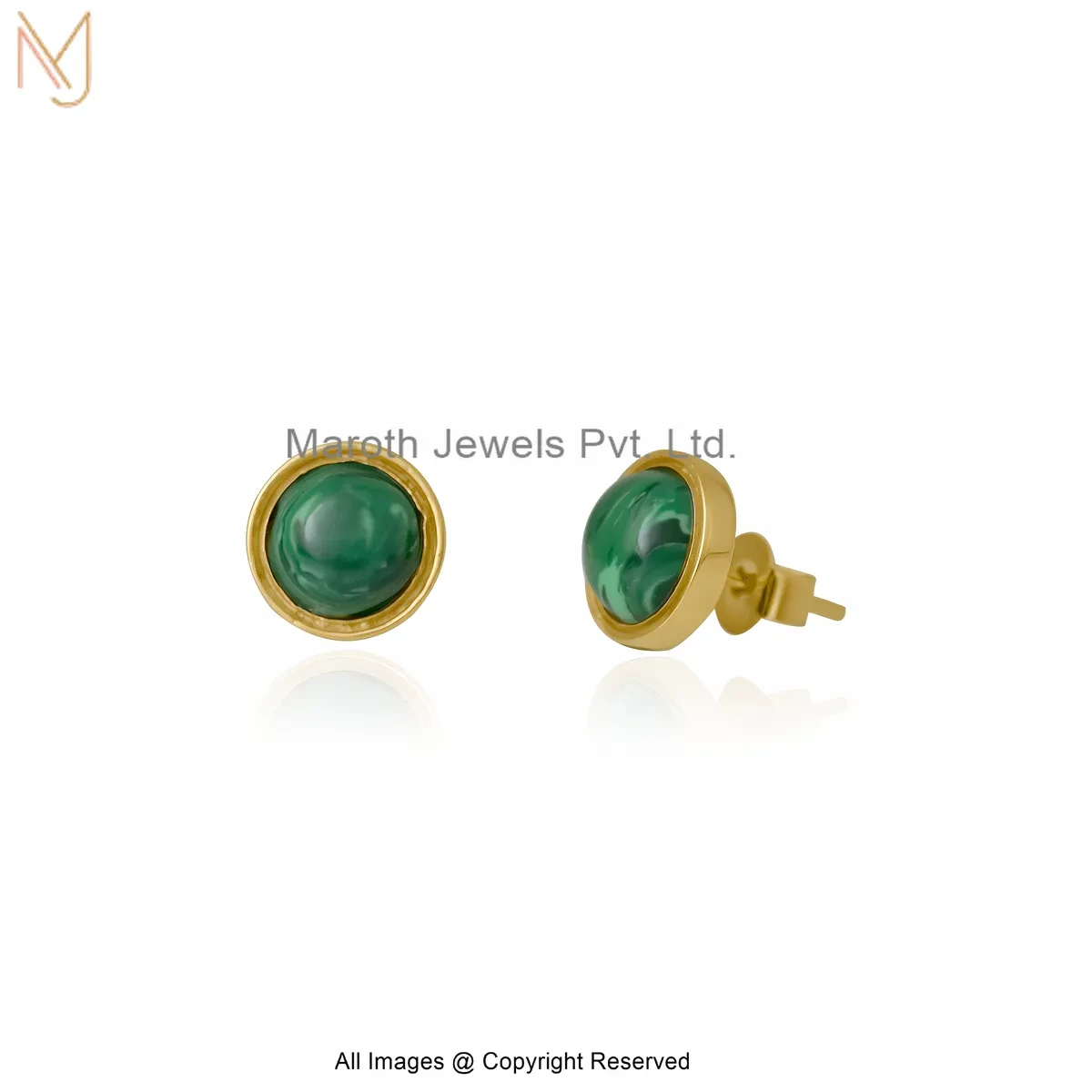 14K Yellow Gold Round Malachite Bezel Stud Earring Custom Jewelry