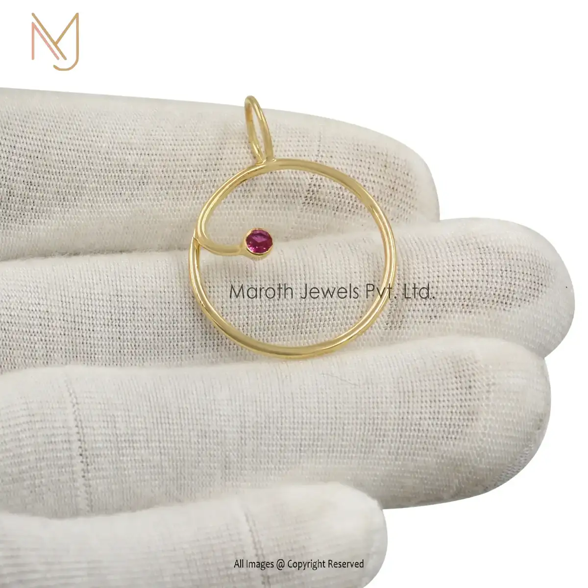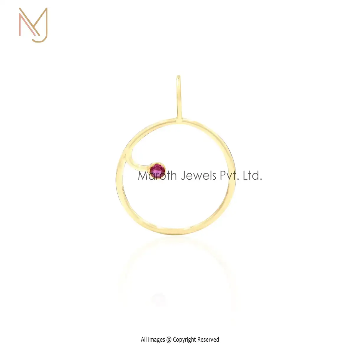 14K Yellow Gold Ruby Circle Charm Enhancer Custom Jewelry