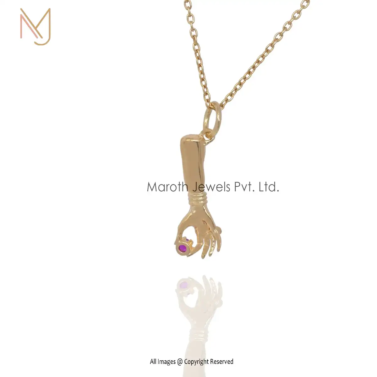 14K Yellow Gold Ruby Figa Padlock Pendant Custom Jewelry