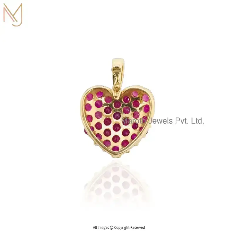 14K Yellow Gold Ruby Heart Gemstone Pendant Custom Jewelry