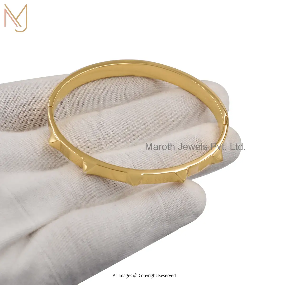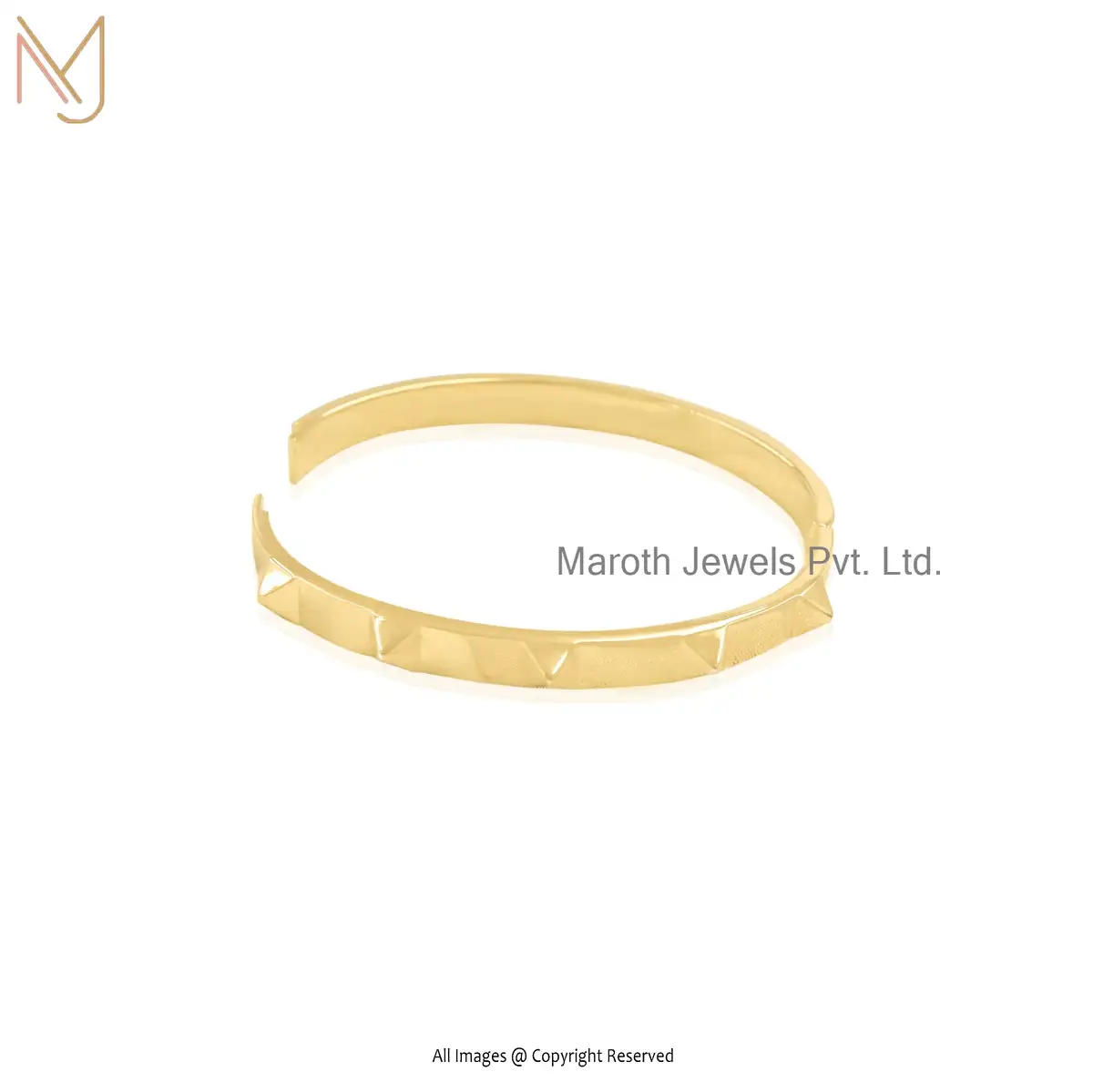 14K Yellow Gold Square Pyramid Rivet Bangle Jewelry Supplier