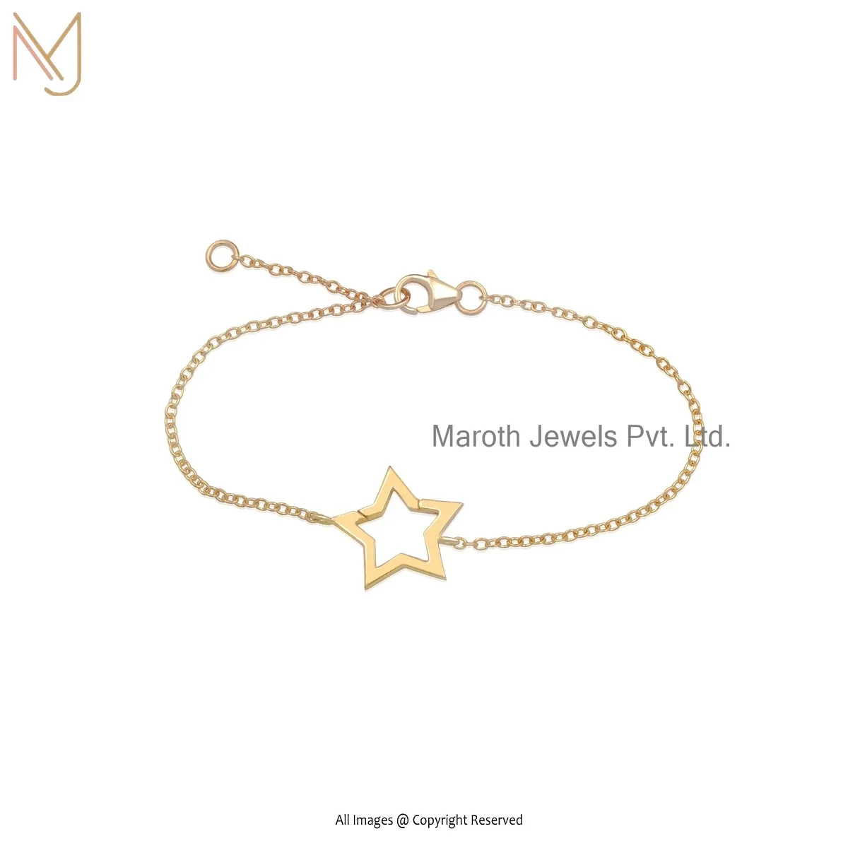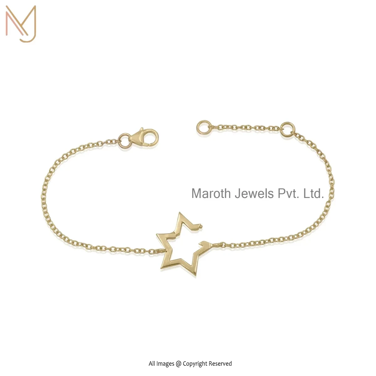 14K Yellow Gold Star Chain Bracelet Custom Jewelry
