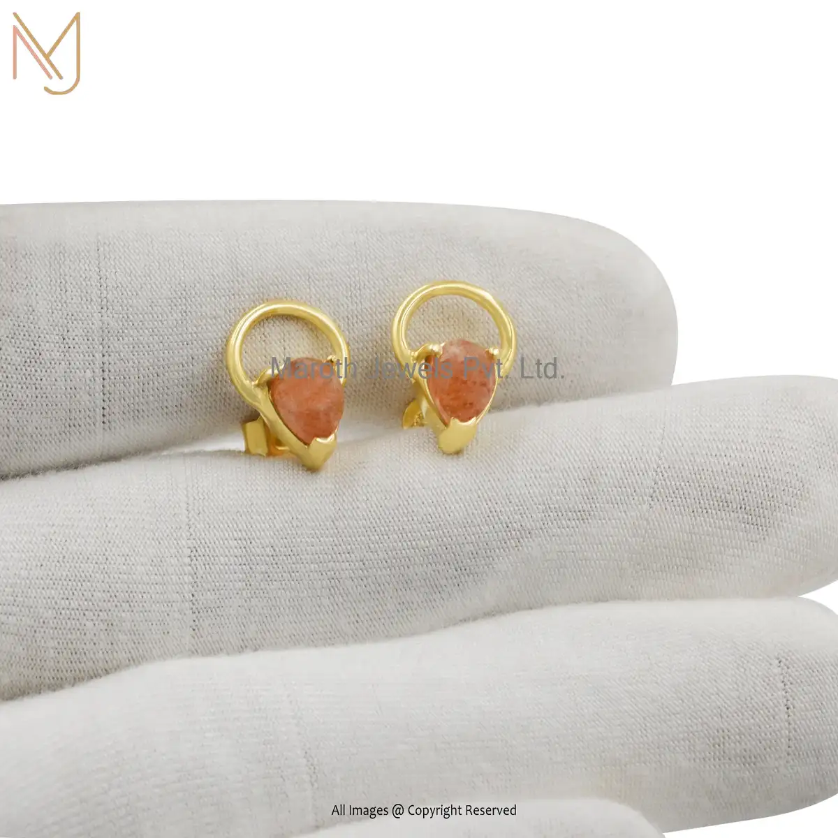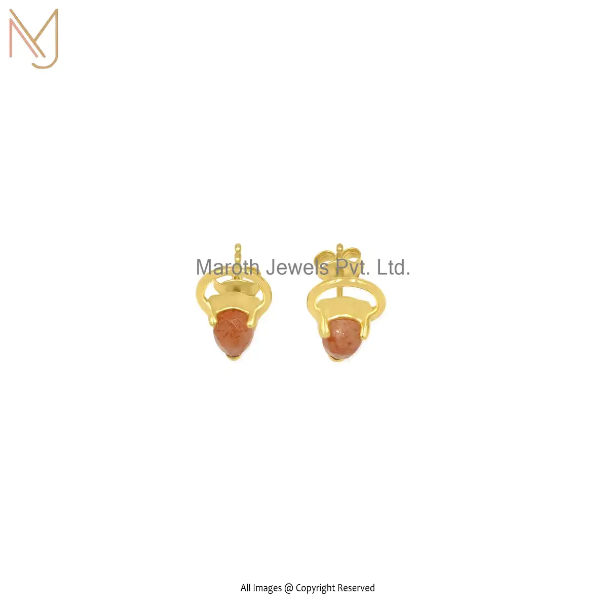 14K Yellow Gold Sun Stone Studs Earring Jewelry Supplier