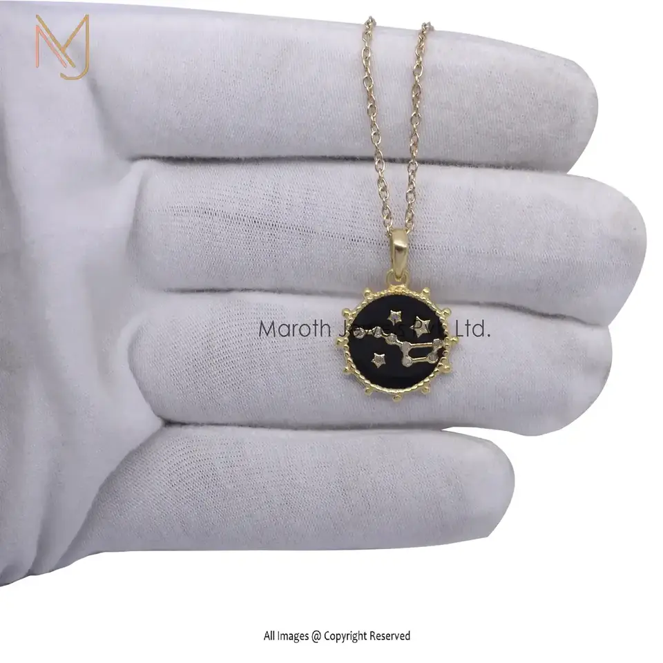 14K Yellow Gold Three Star Black Enamel Pave Diamond Pendant USA