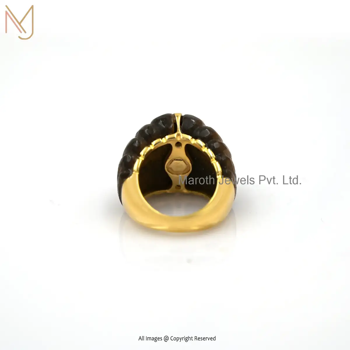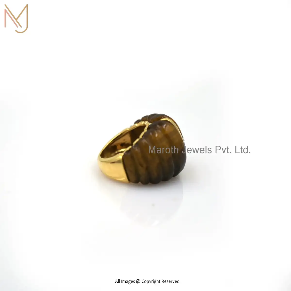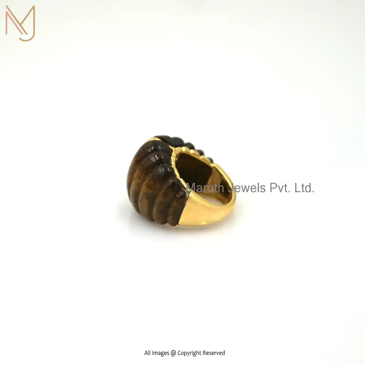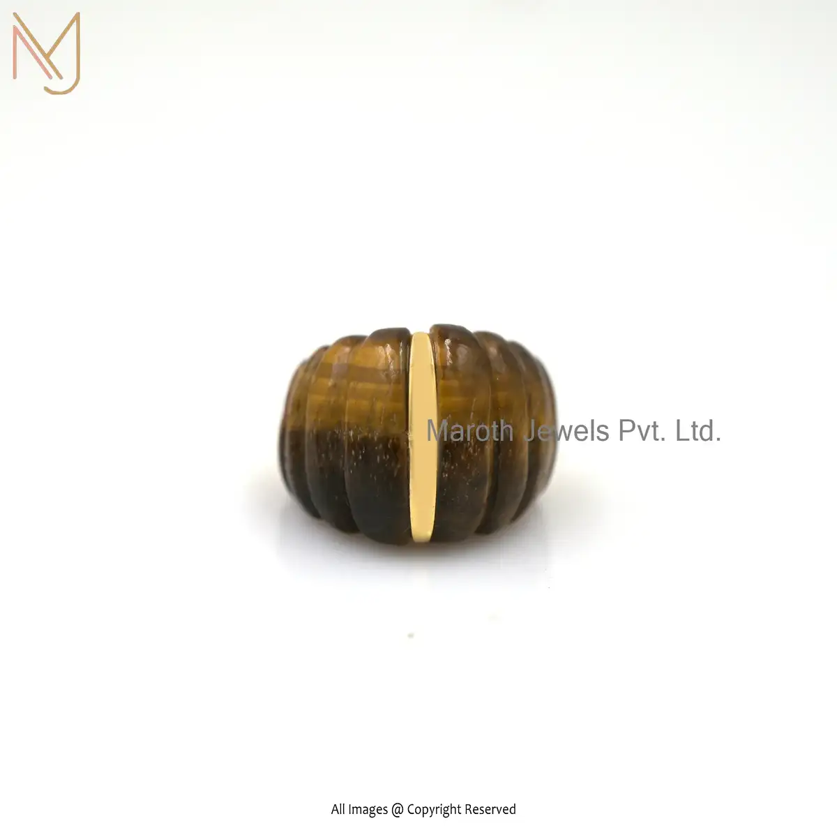 14K Yellow Gold Tiger Eye Dome Ring Jewelry Manufacturer