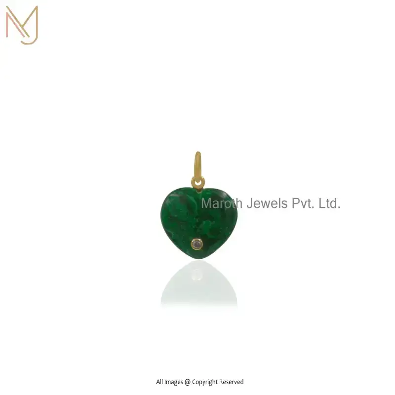 14K Yellow Gold Tiger's Eye & White Cubic Zircon Heart Pendant Manufacturer