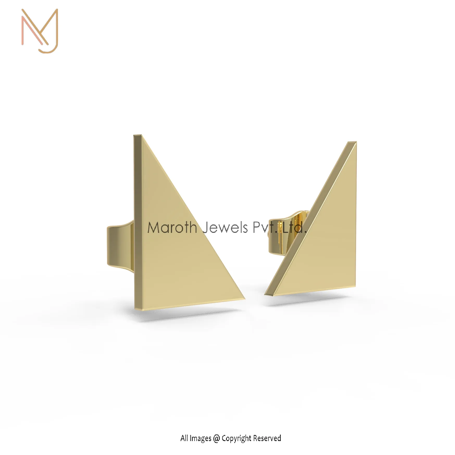 14K Yellow Gold Triangle Stud Earring Handmade Jewelry Manufacturer