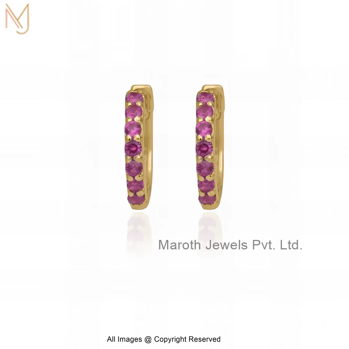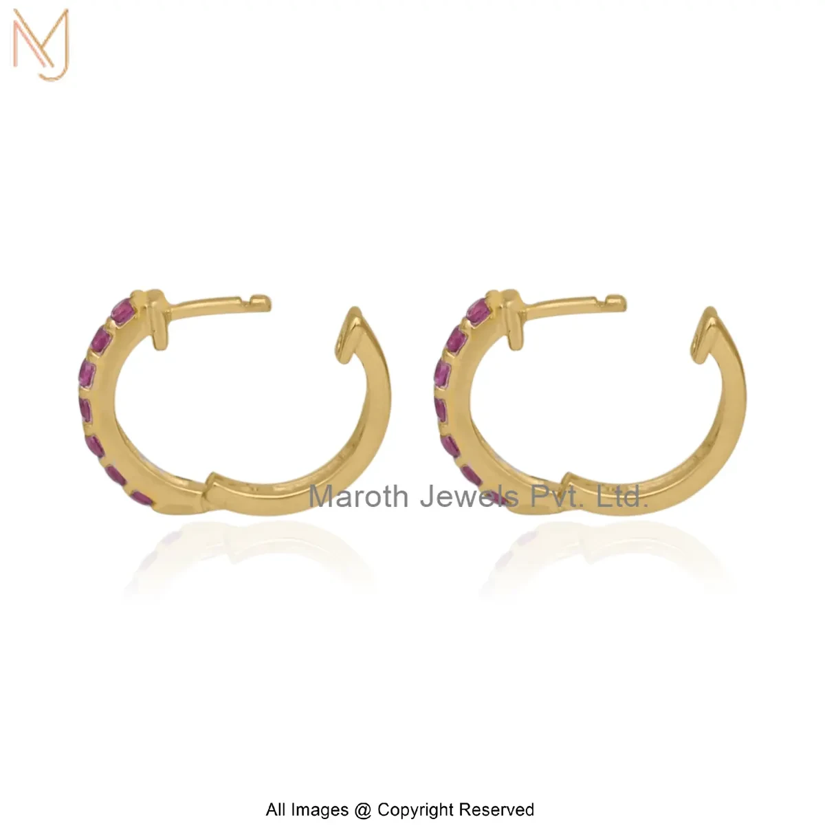 14K Yellow Gold Tsavorite Gemstone Huggies Earring Manufacturer