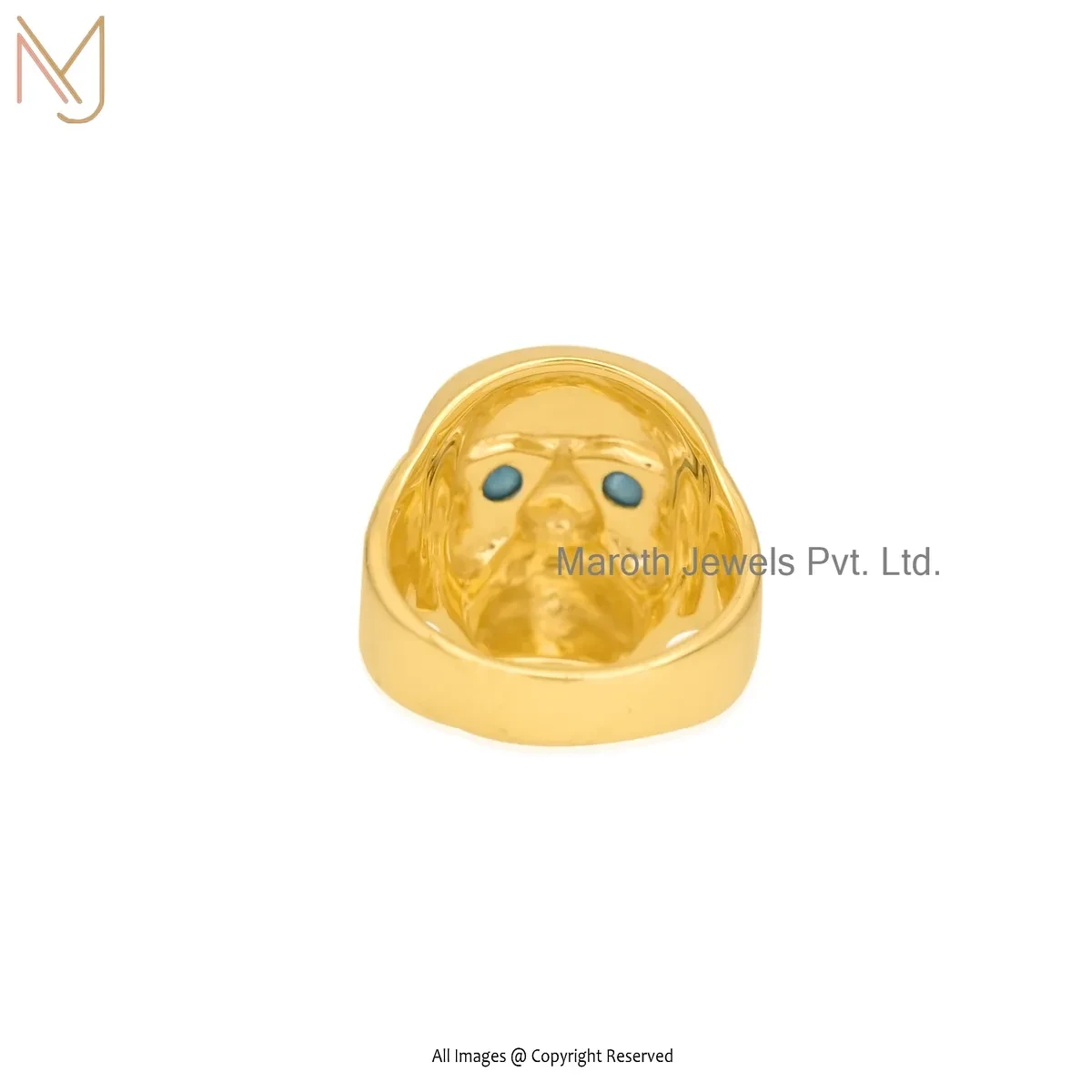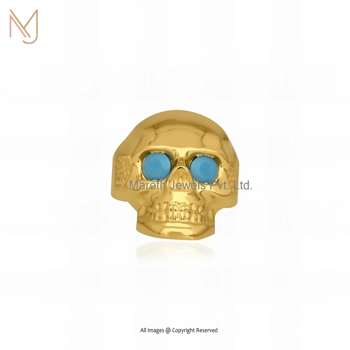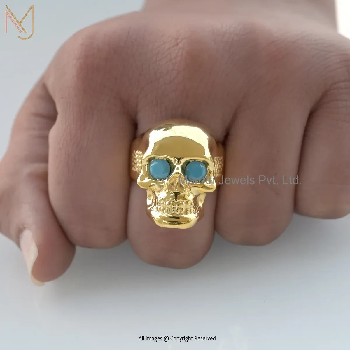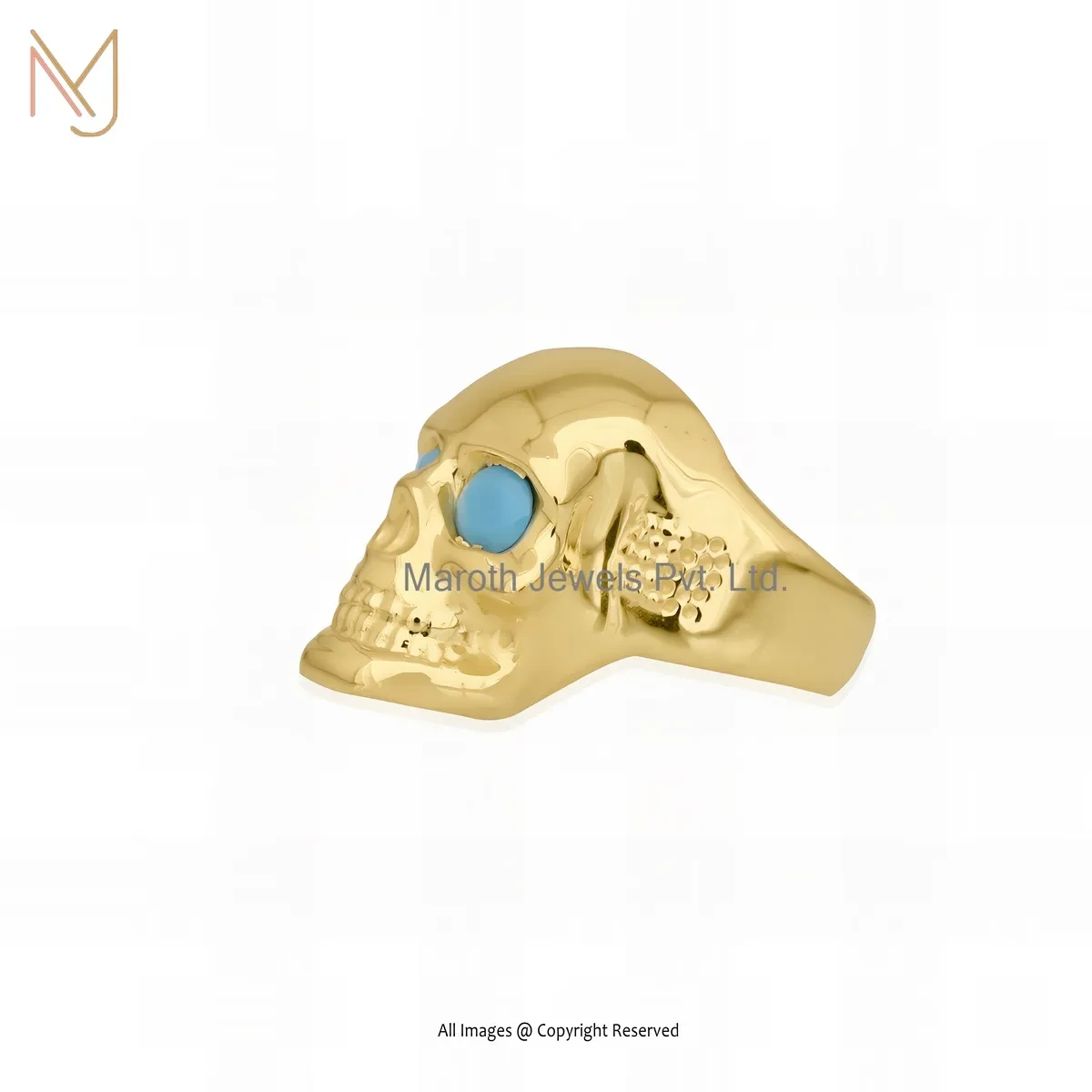 14K Yellow Gold Turqouise Skull Ring Manufacturer