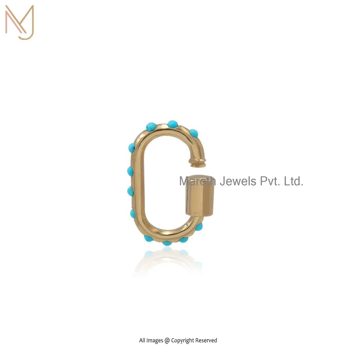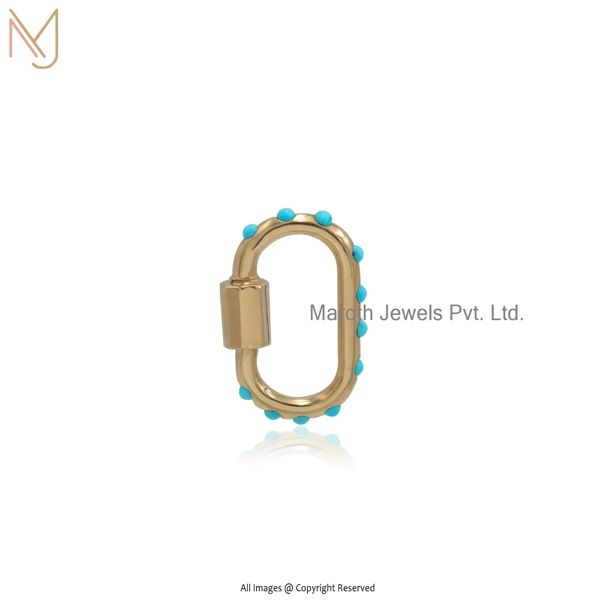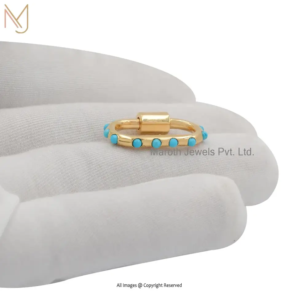 14K Yellow Gold Turquoise Carabiner Lock Jewelry Supplier