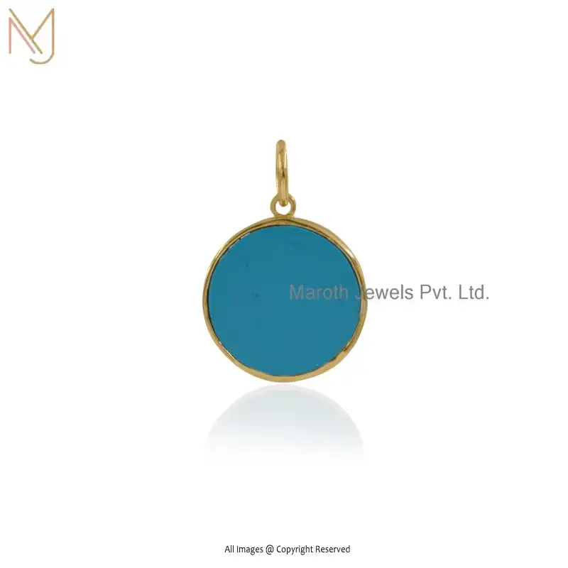 14K Yellow Gold Turquoise & Diamond Star Disc Pendant Jewelry Supplier