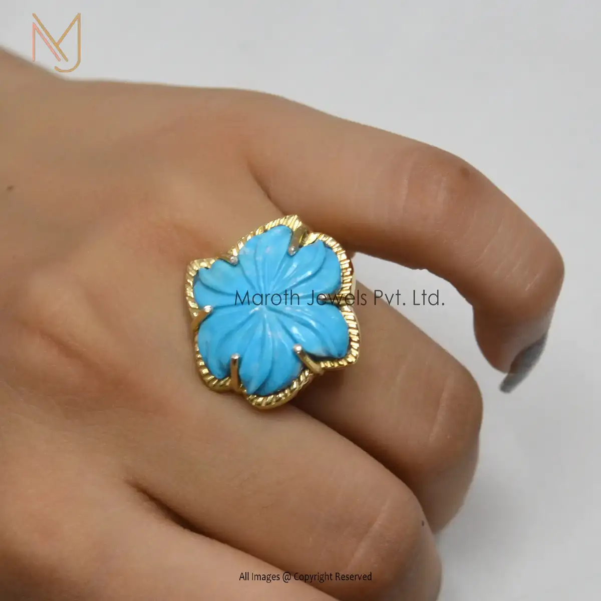 14K Yellow Gold Turquoise Flower Ring Manufacturer