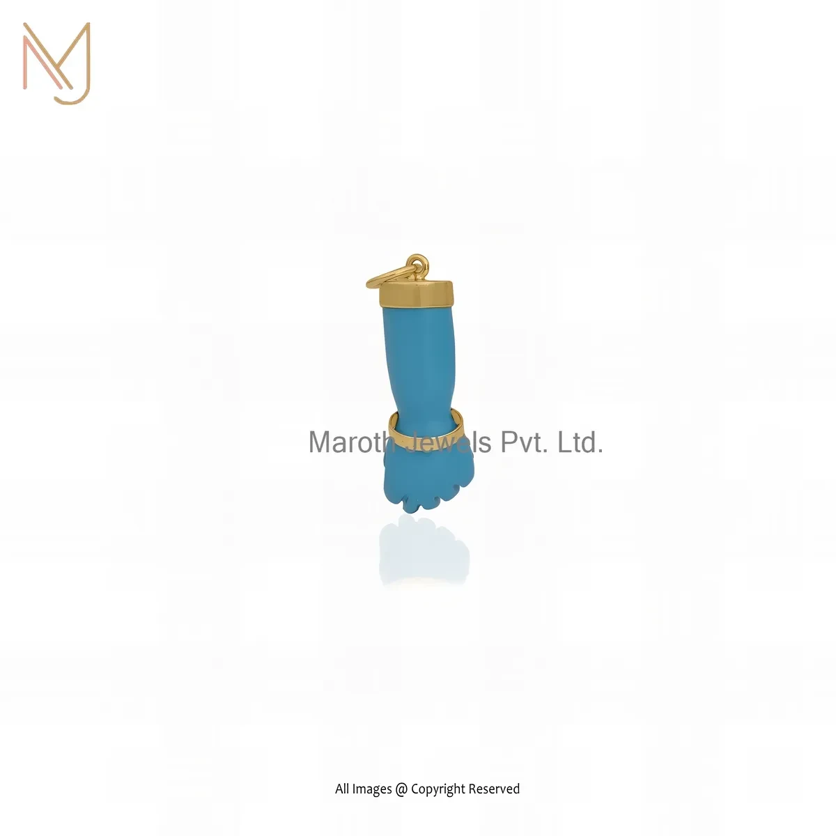 14K Yellow Gold Turquoise & Golden Enamel Figa Pendant Manufacturer