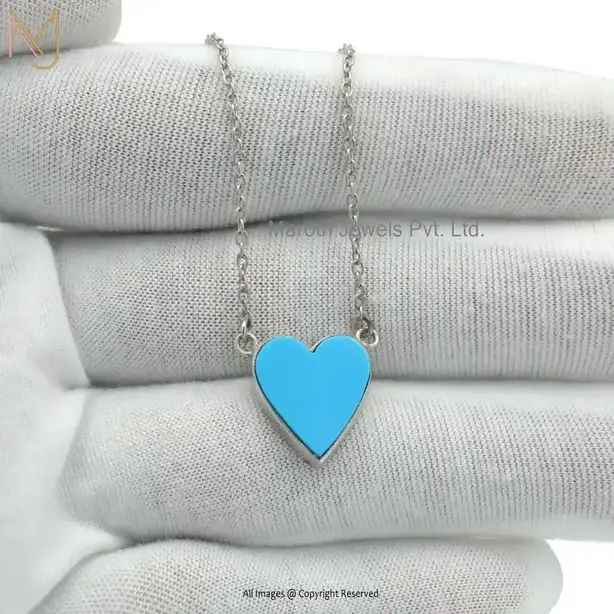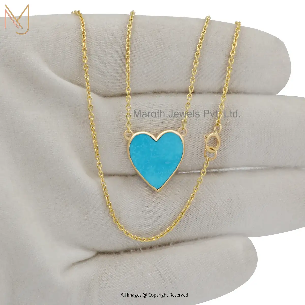 14K Yellow Gold Turquoise Heart Necklace Jewelry Supplier